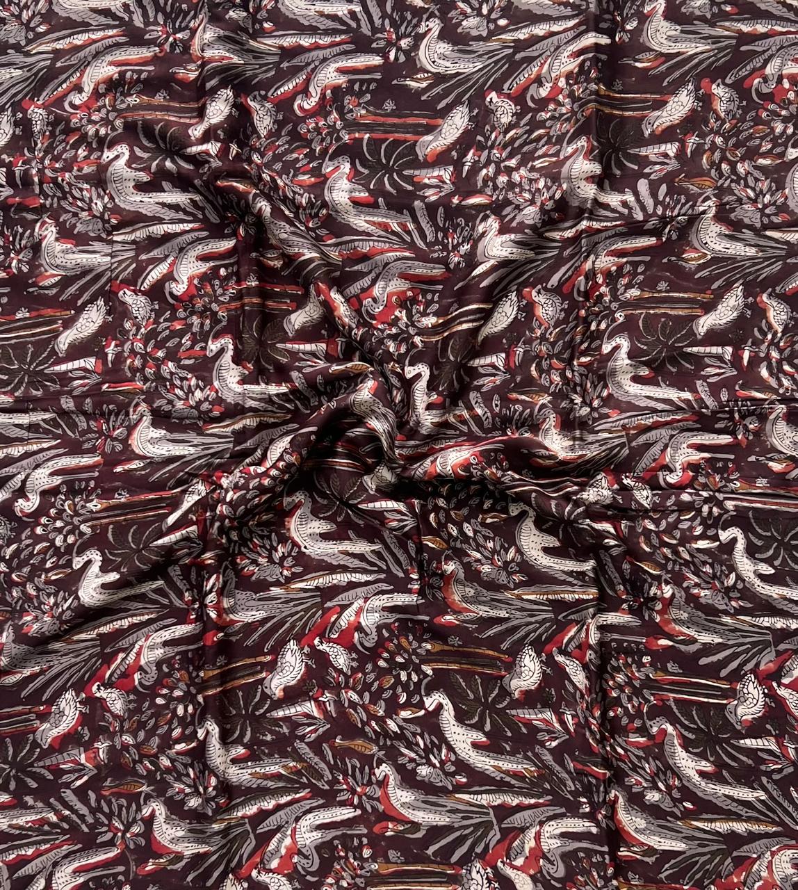 Rich heritage flows through every inch of the Aubergine Blooms Vanspati Print Fabric, an exquisite testament to traditional Indian artistry. This fabric is lovingly crafted, celebrating the age-old techniques of hand block printing that bring life to its intricate motifs.