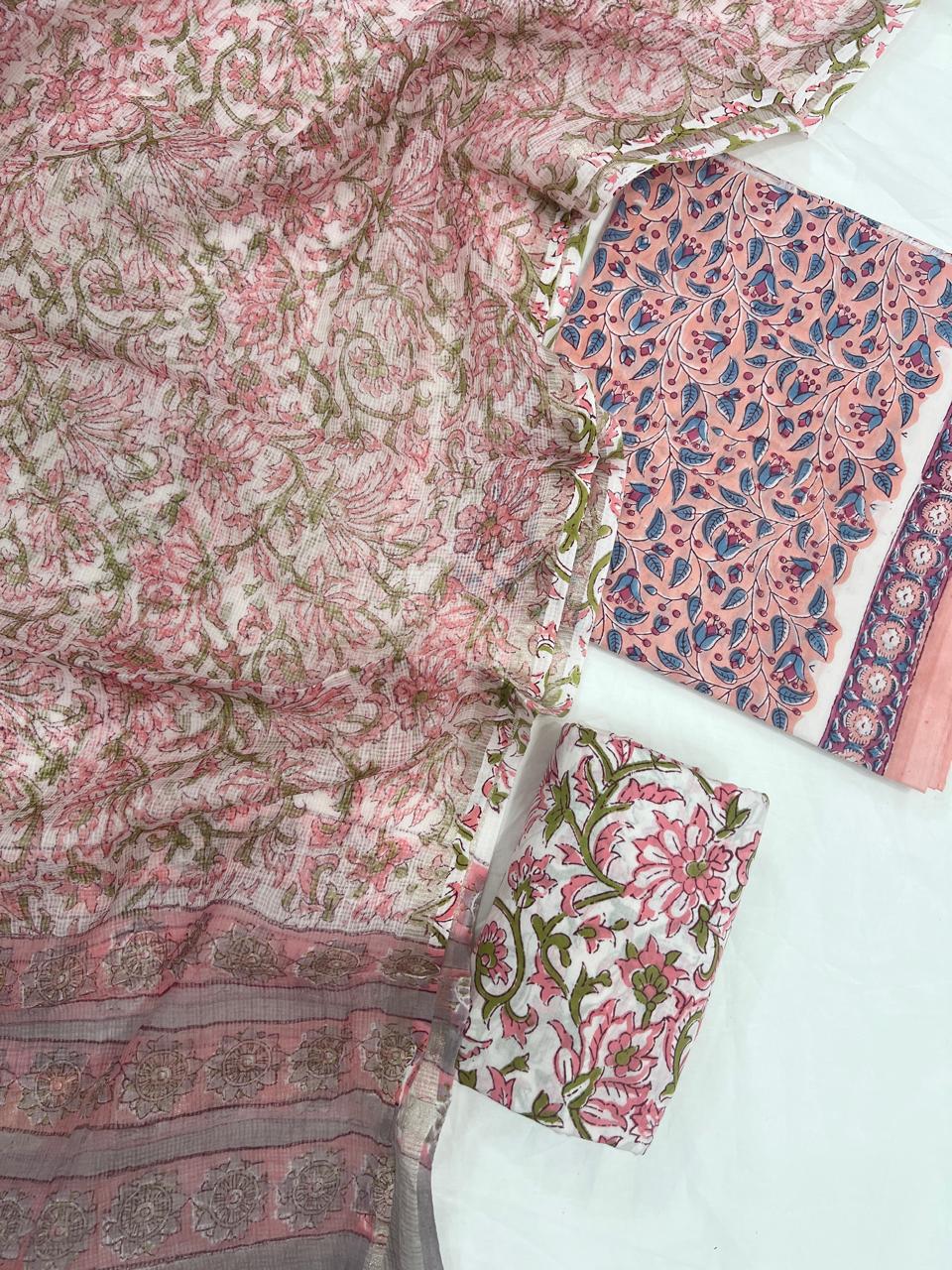 This fabric embraces you with its light, airy texture—ideal for those warm summer days or festive evenings. The intricate patterns of flowers interwoven with paisley designs speak to the timeless elegance of traditional artistry, each motif a testament to India’s rich textile heritage.