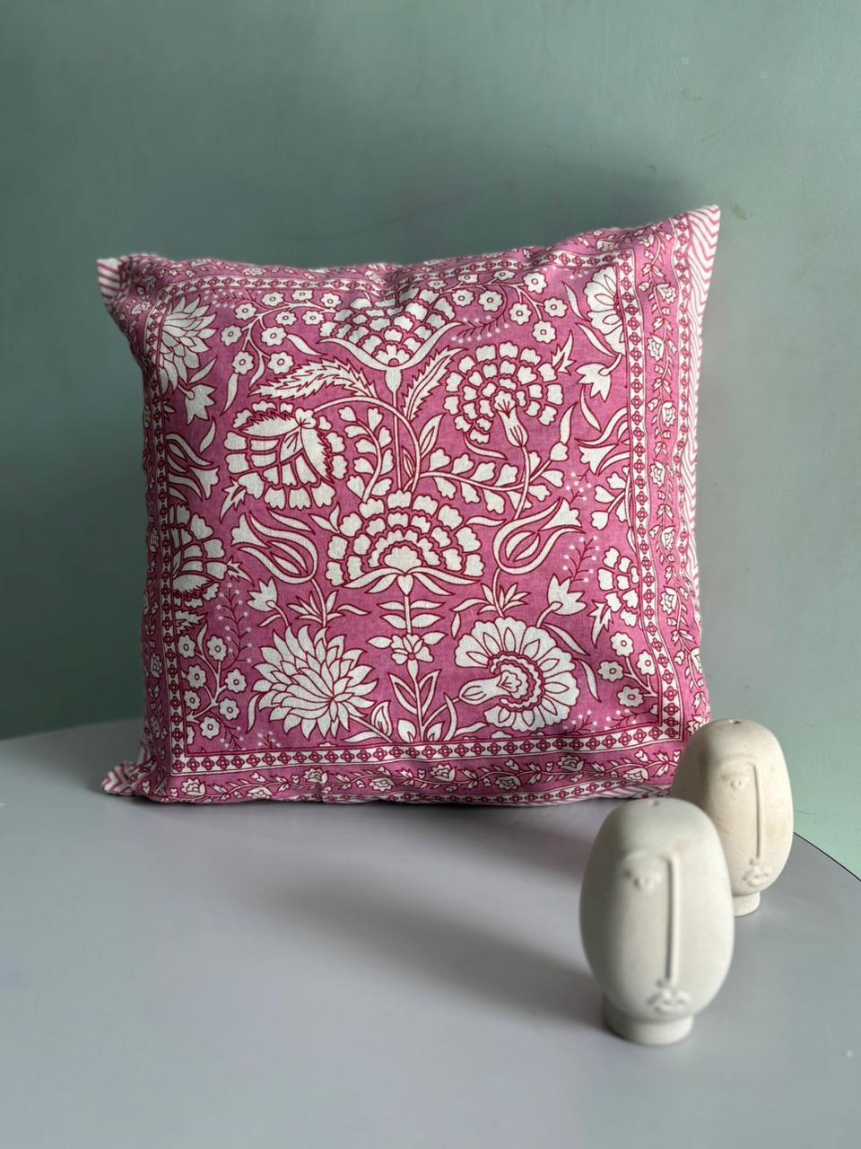 Embrace the artistry of Indian craftsmanship with our Blush Floral Reverie cushion covers. Each piece reflects a rich heritage, showcasing delicate floral motifs that dance across a soft, muted blush canvas. The intricate block printing technique, a hallmark of traditional artisans, ensures that every cover is a unique work of art, celebrating the beauty of hand-printed textiles.