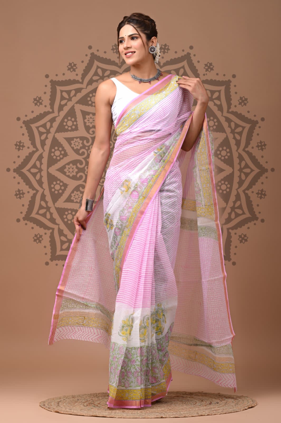 Crafted with care, this saree offers both comfort and style—ideal for those who cherish the intricate details of hand block prints. The super lightweight fabric ensures you'll stay cool while looking effortlessly chic. The graceful silhouette is complemented by a matching blouse piece, allowing you to create a complete ensemble that reflects your personal style and love for tradition.