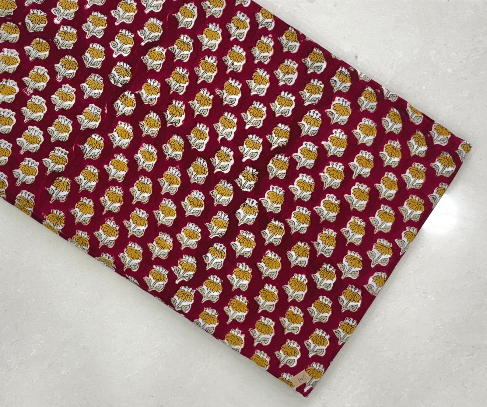 Feeling uninspired by ordinary fabrics? Look no further! Our Burgundy Blossom Hand Block Printed Cotton Running Fabric is a splendid solution that embodies the essence of artisanal craftsmanship. The rich burgundy hue serves as a luxurious canvas, playfully adorned with bright mustard floral motifs, inviting a sense of warmth and creativity as you wear it.