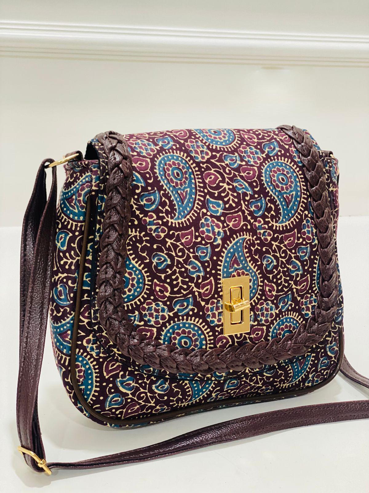 Infuse your accessory collection with the timeless charm of our Burgundy Paisley Elegance Quilted Sling Bag. Crafted with artisan attention, this vibrant piece showcases an intricate paisley design in deep burgundy, complemented by striking teal and soft golden yellow motifs that dance across its surface. The smooth fabric is expertly block printed, celebrating the beauty of traditional Indian techniques.