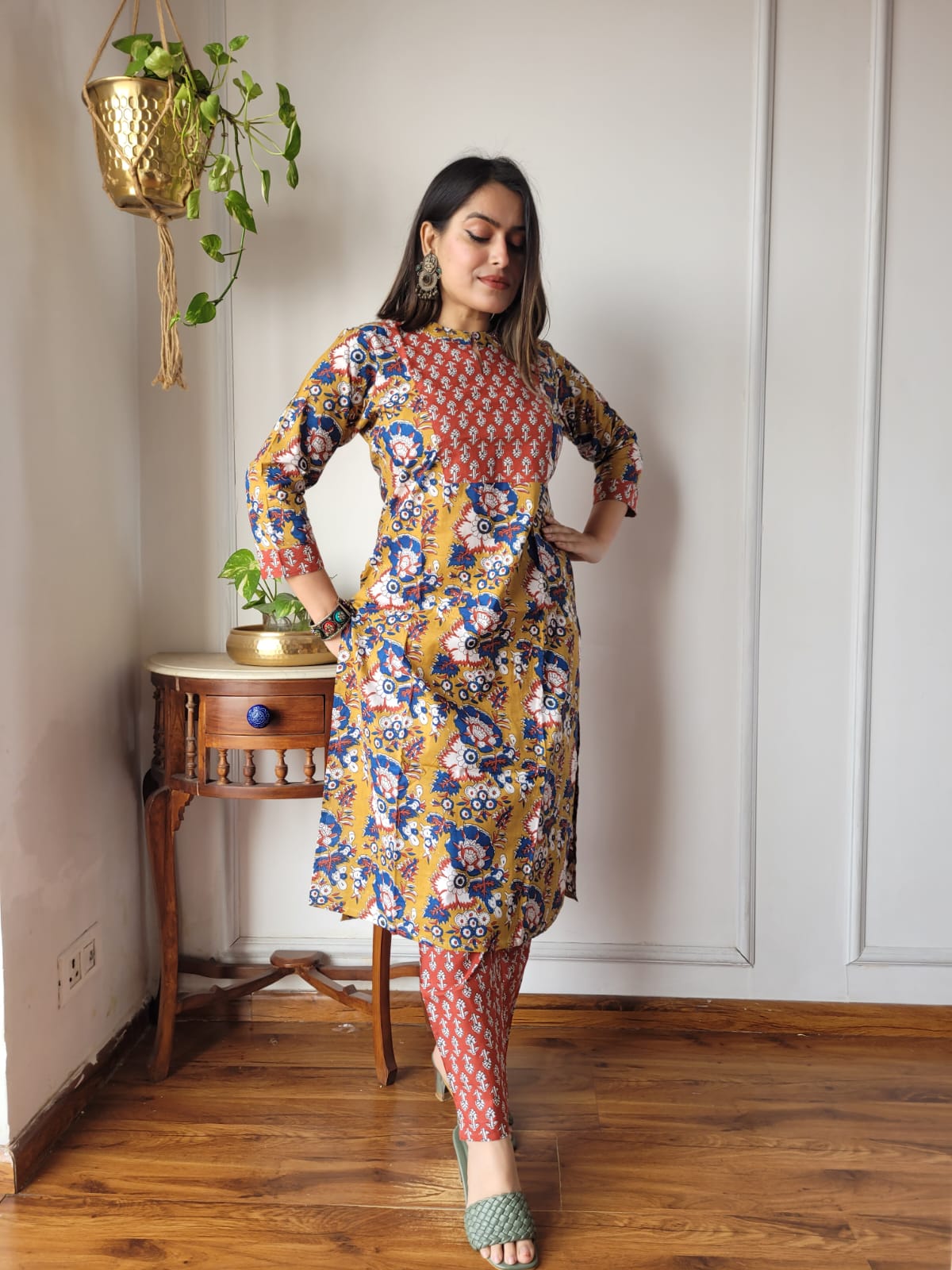 Discover the feeling of vibrant artistry with our Cascading Indigo Floral Cotton Kurti with Pant. This artisan-crafted ensemble showcases the beauty of traditional block printing, featuring enchanting floral motifs that dance gracefully across the fabric. Made from soft, breathable cotton, this outfit is carefully made for lasting wear, ensuring you feel comfortable and stylish throughout the day.