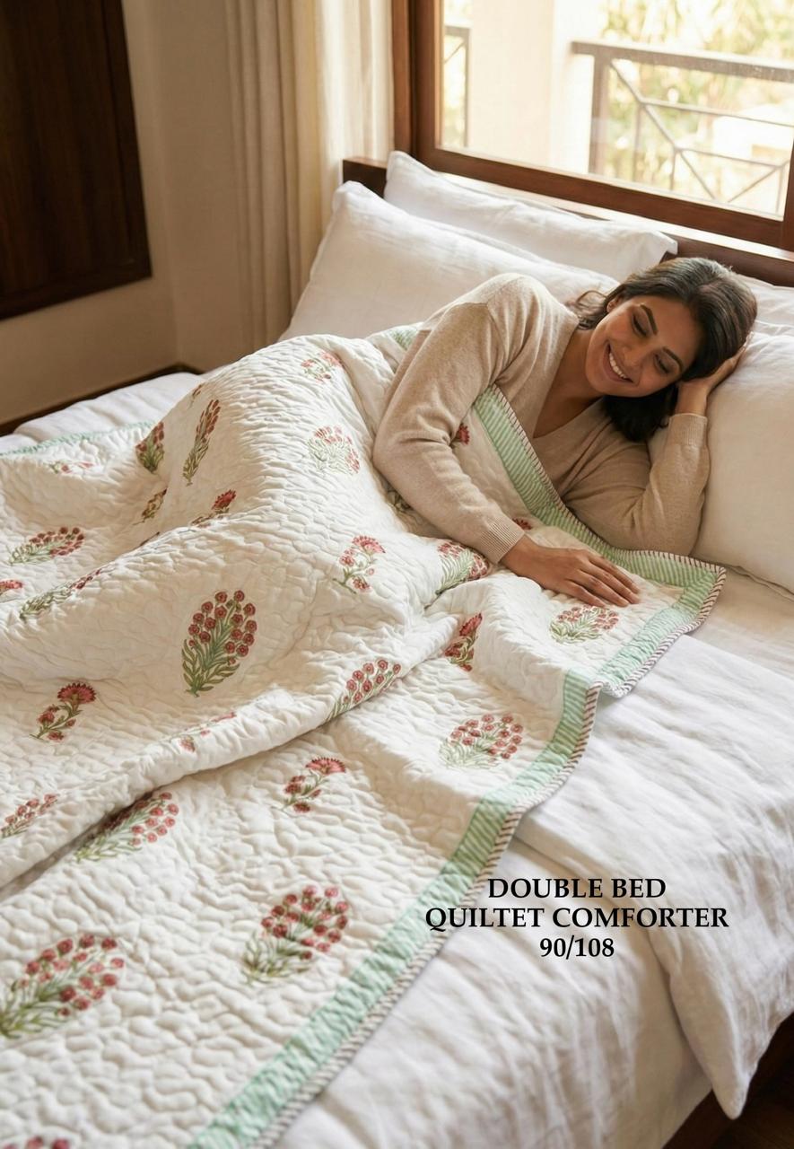 This comforter is not just a textile; it's a narrative woven into fabric. The meticulous block prints tell stories of artisans who pour their heart and soul into every creation, ensuring that you experience the essence of Indian craftsmanship in your home.