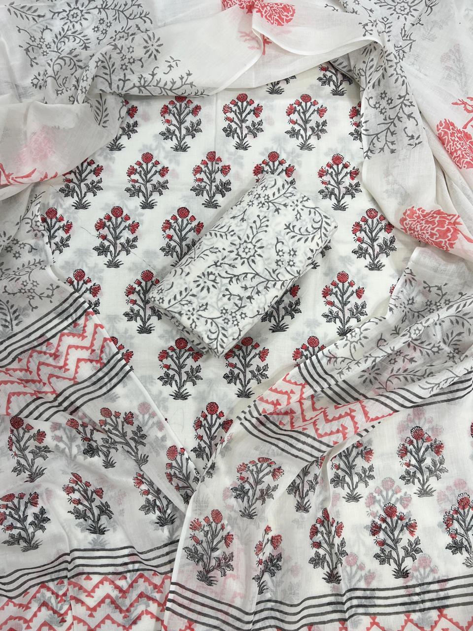 With 2.5 meters of fabric for the top, bottom, and a matching dupatta, this set offers you the flexibility to create your own unique look. Each piece is adorned with traditional hand block prints, giving you a wearable piece of art that celebrates the intricate craftsmanship of Indian artisans.