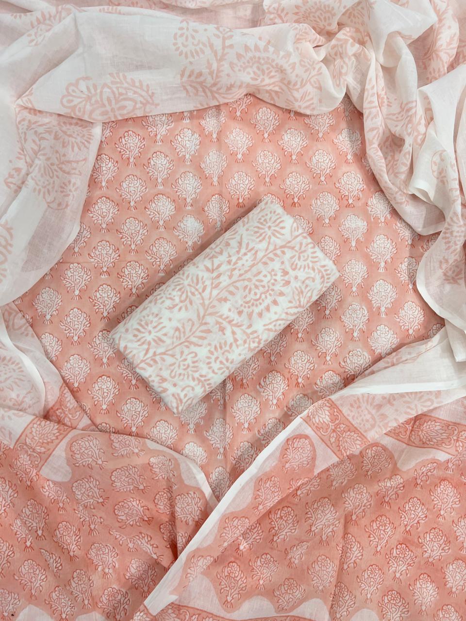Introducing a delightful addition to your collection, the Coral Blossom Paisley Cotton Suit Set draws inspiration from the enchanting motifs of nature. Each piece is artisan-crafted, showcasing the beauty of traditional techniques that have been passed down through generations. The delicate paisley patterns in warm coral hues invite you to embrace your unique style.