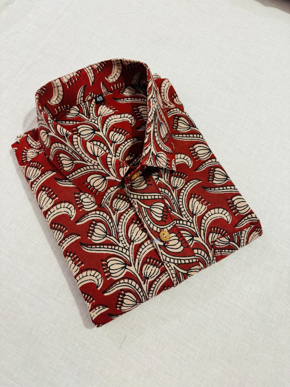 Indulge in the timeless art of hand block printing with our Creamy Floral Block Printed Cotton Shirt for Men. Crafted in Bagru block print on premium cotton 60*60 super dying fabric, this shirt embodies traditional Indian craftsmanship and style. The classic collar and bold floral pattern in cream and black exude a warm, artisanal charm. Whether for casual outings or semi-formal occasions, this shirt ensures comfort and elegance in every wear.
