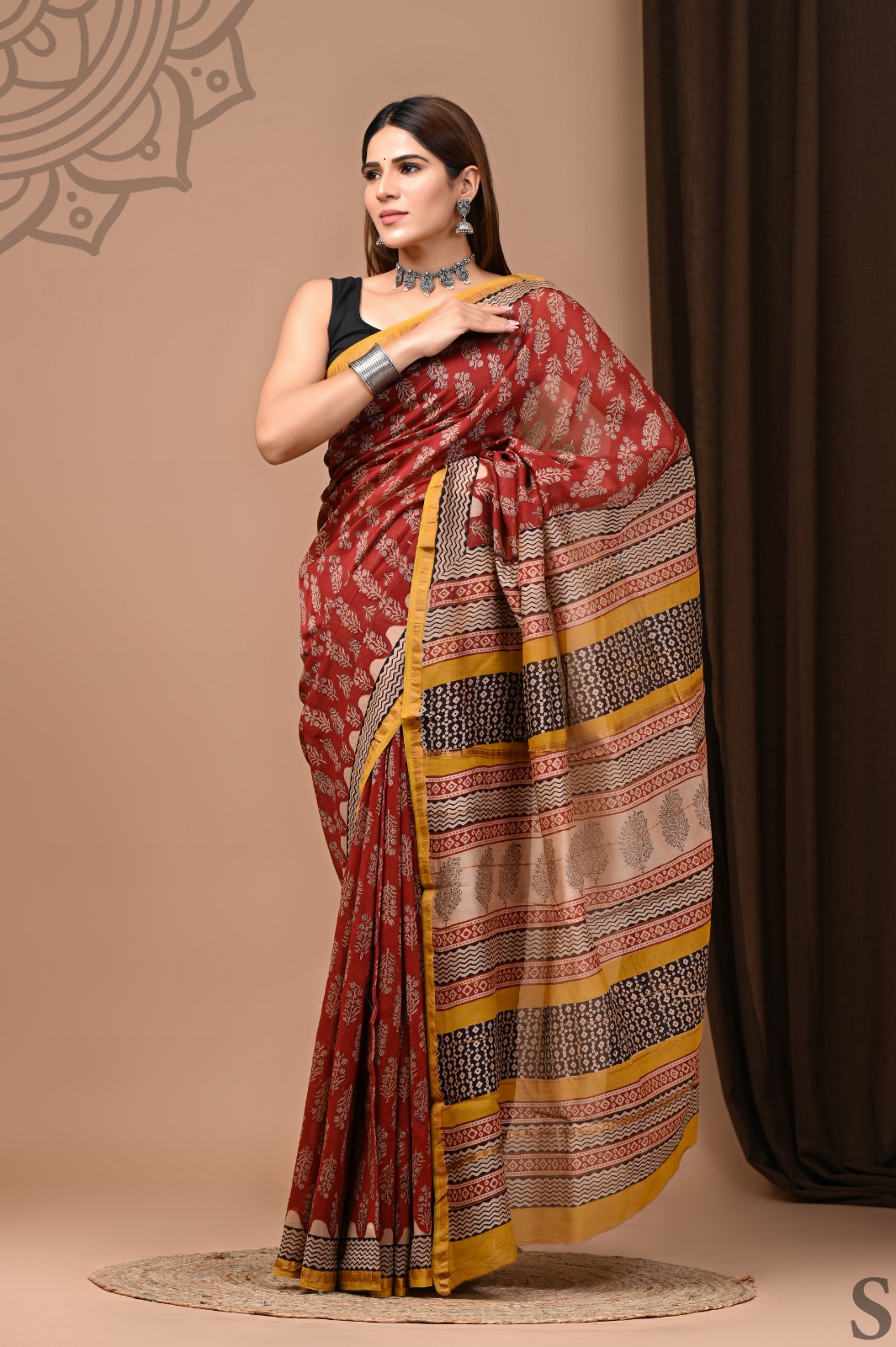 The seamless blend of organic dyes results in a captivating crimson hue, enriched with accents of bright mustard yellow that frame the borders beautifully. Each floral design is a testament to the skill of our artisans, who have devoted countless hours to perfecting their craft. The intricate patterns are not just visually stunning but also evoke a sense of timeless beauty.