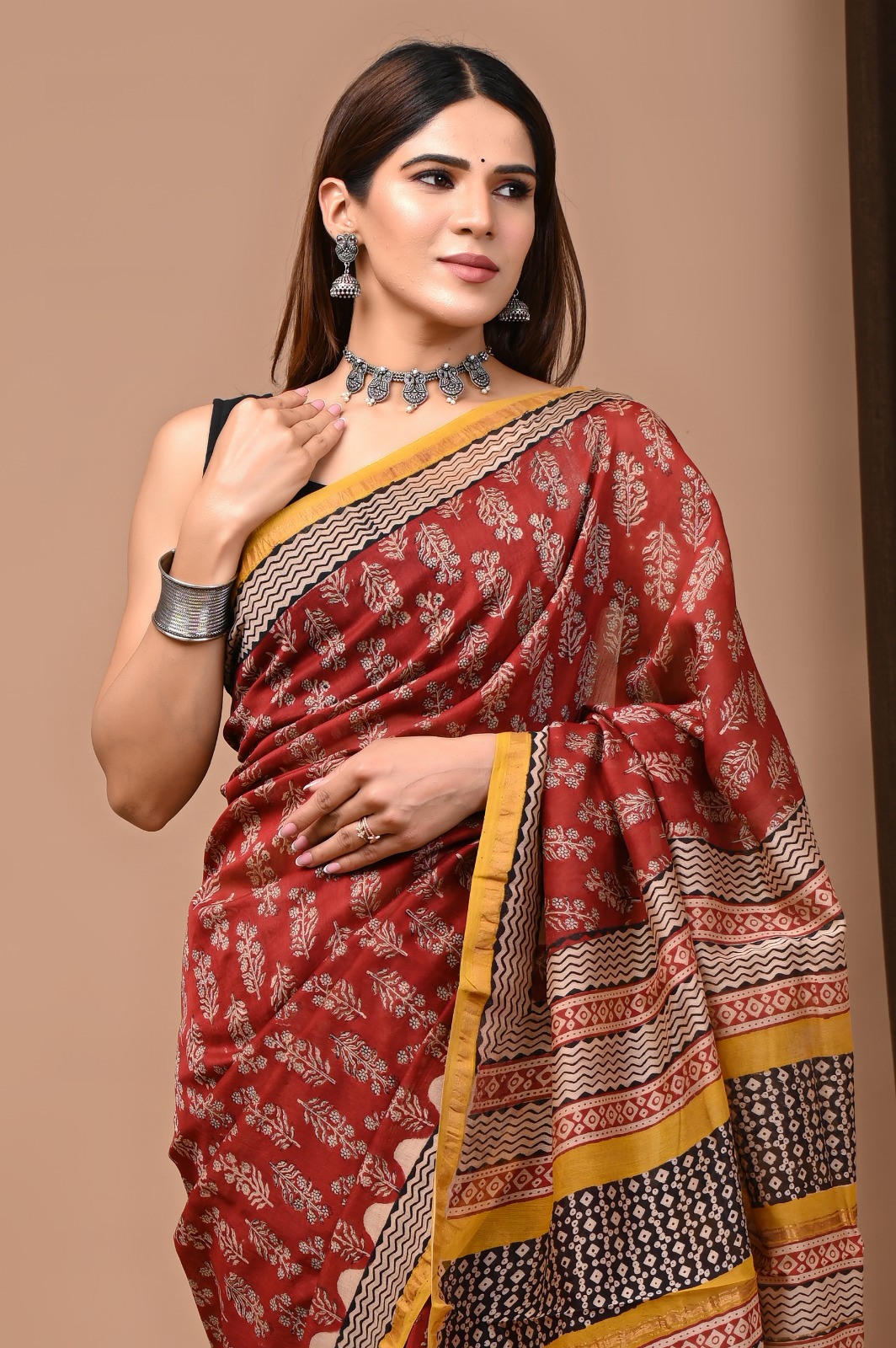 With a length of 5.5 meters, it provides ample fabric for a graceful drape, while the accompanying 80 cm blouse piece ensures you have everything you need for a complete ensemble. To preserve its beauty, we recommend dry cleaning or gentle hand washing.