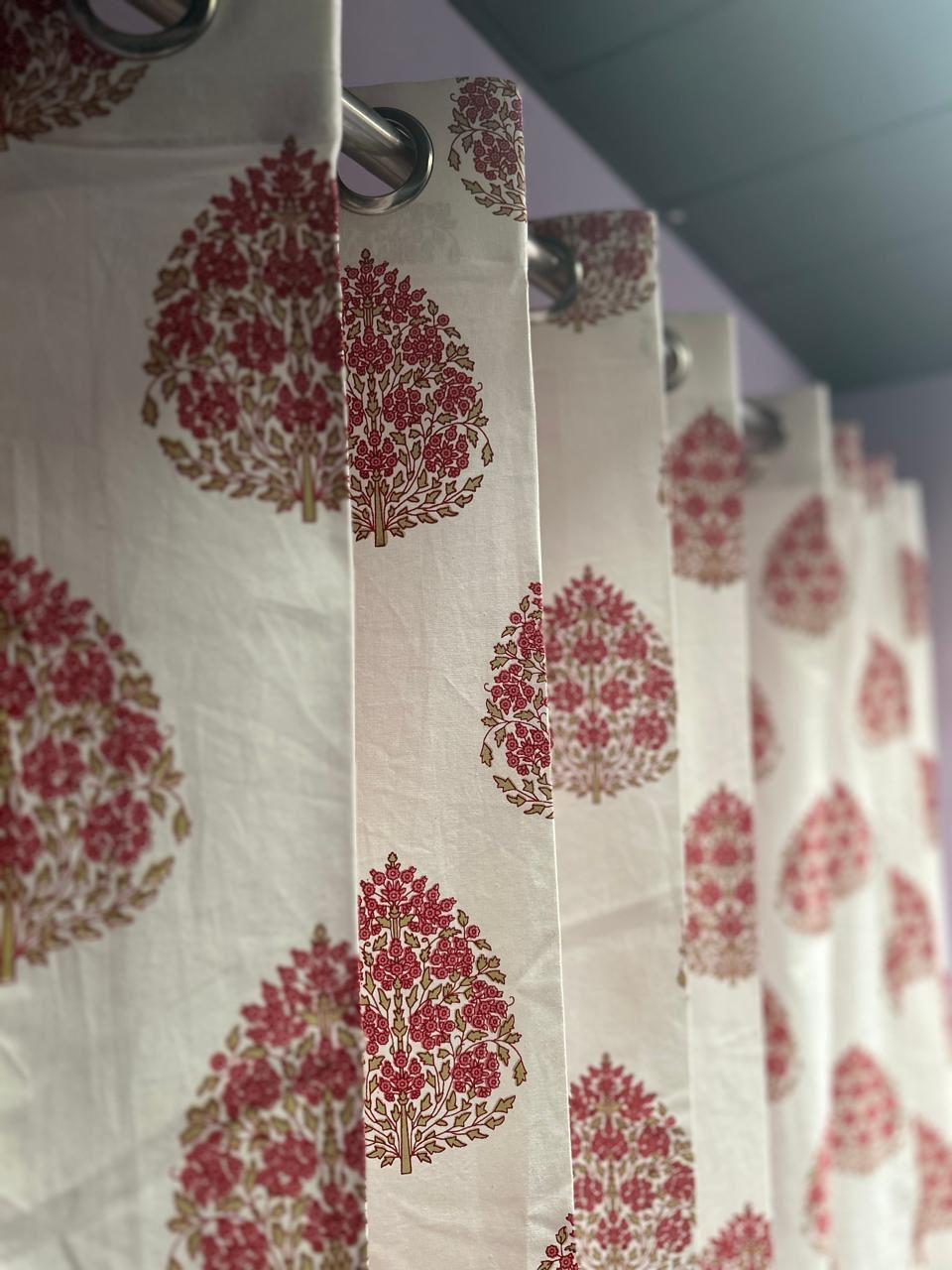 Rooted in the rich tapestry of Indian craftsmanship, these curtains are adorned with a vibrant floral motif that captures the essence of nature’s elegance. The intricate hand block printing technique brings forth a design that resonates with tradition while seamlessly fitting into modern aesthetics.