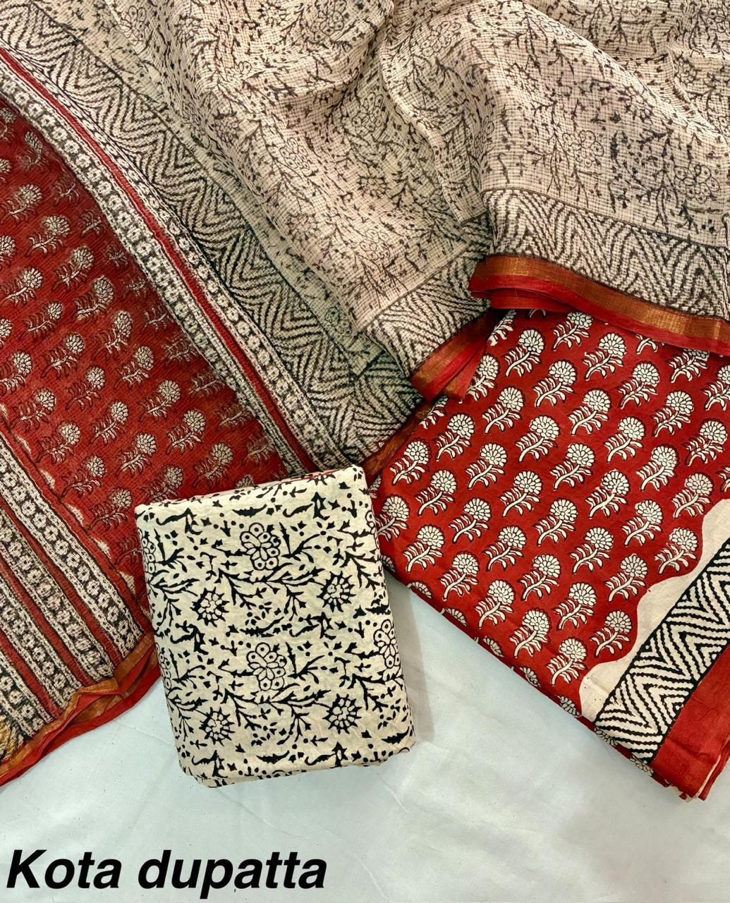 Carefully made for lasting wear, this dress material is ideal for festive occasions or casual gatherings, allowing you to embrace your individuality while celebrating the beauty of traditional hand block printing.