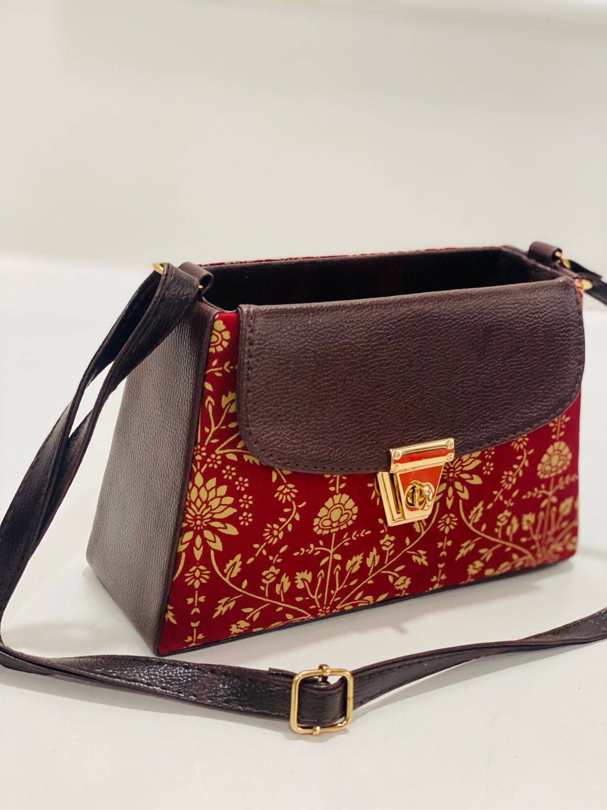 Designed for those who appreciate intricate details, this sling bag is not just about beauty. Its sturdy structure ensures durability, while the elegant dark brown leather accents add a touch of sophistication. The standout gold clasp provides a contemporary twist, making it a perfect companion for both casual outings and festive gatherings.