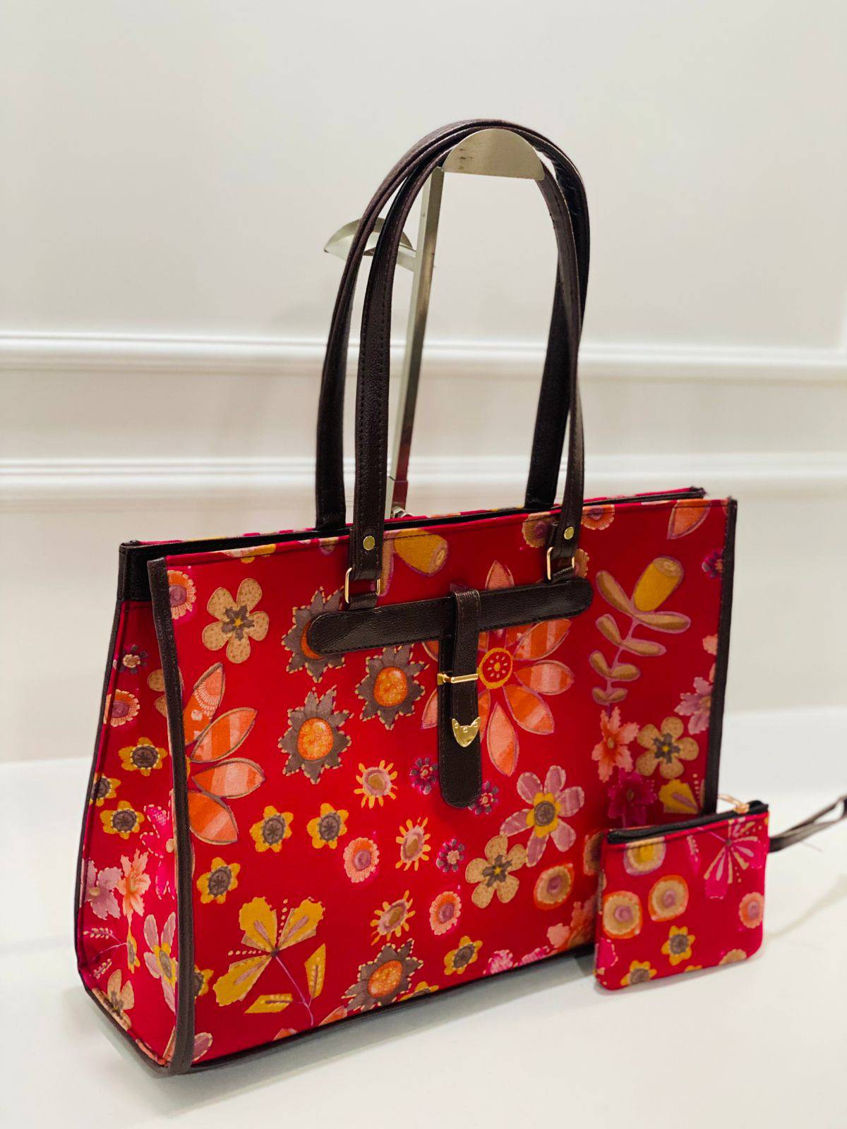 Rich in tradition and echoing the vibrant spirit of Indian craftsmanship, the crimson floral cotton big size office bag is a true testament to the artistry of our skilled artisans. Each flower is meticulously printed, reflecting a lively arrangement that tells its own story. With a deep crimson base accentuated by playful orange, pink, and olive green blooms, this bag embodies both elegance and vitality.