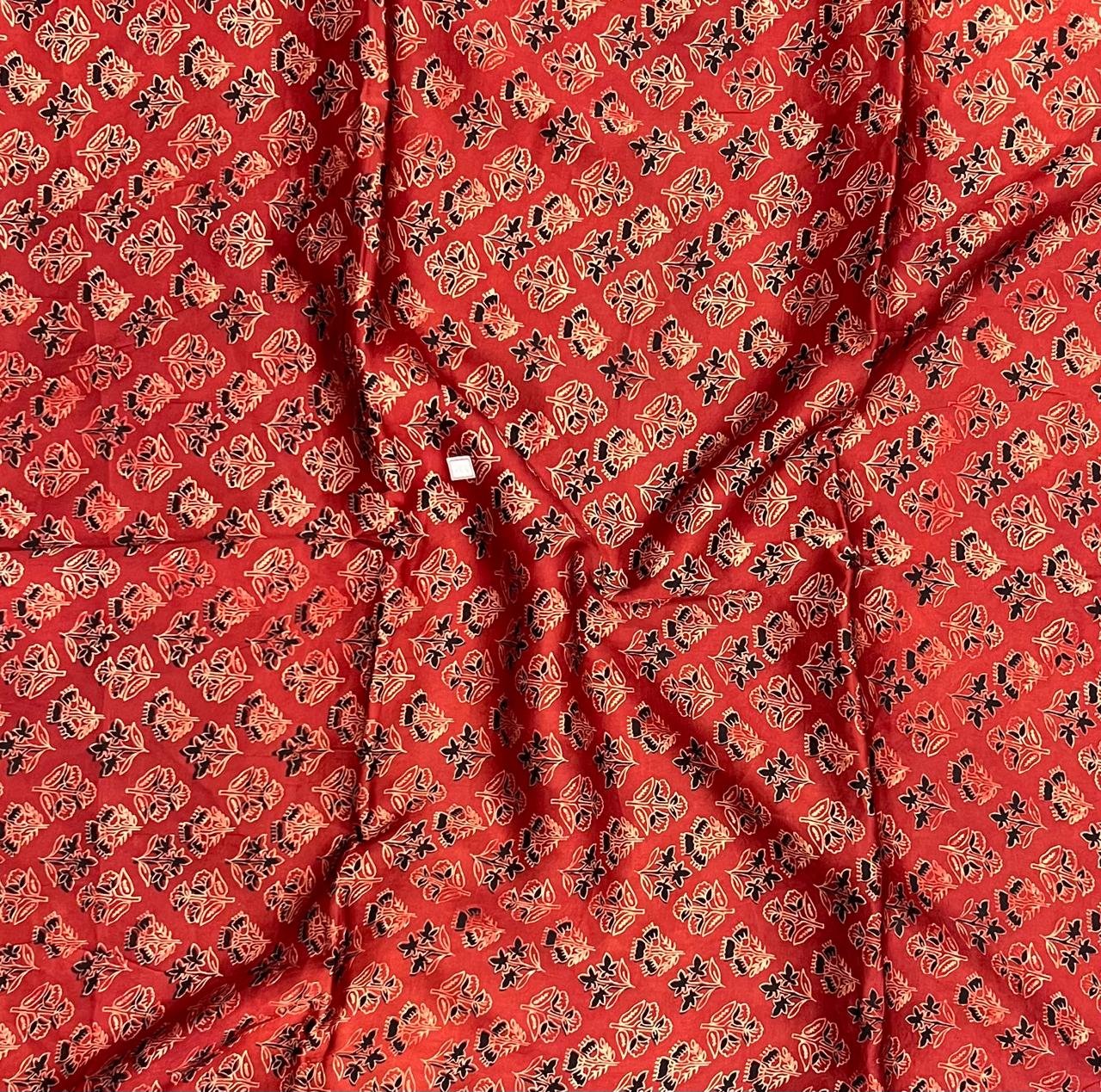 Rich crimson hues mingle with delicate floral motifs in this enchanting fabric, expertly hand block printed to breathe life into timeless Indian artistry. Each intricate detail reflects the dedication of artisans whose hands bring forth a tapestry of stories woven into every inch. As you run your fingers along its soft, smooth surface, you'll discover the warmth of tradition meeting the elegance of contemporary style.