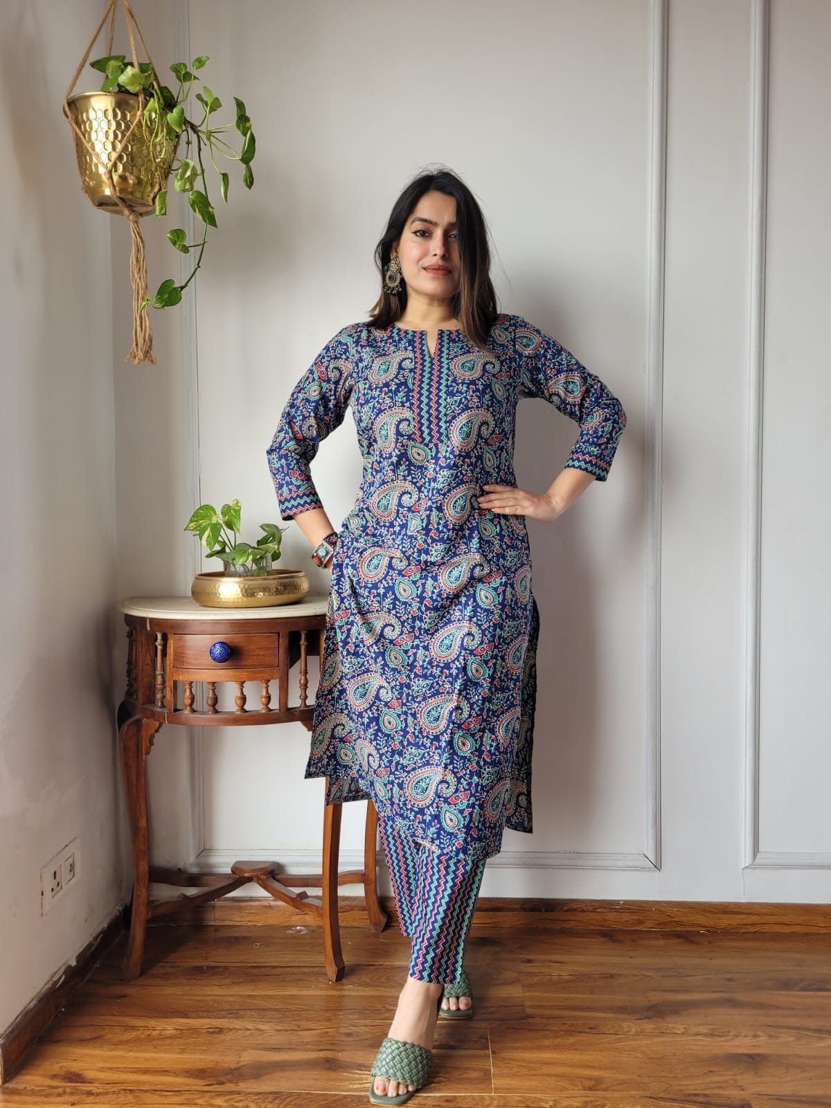 Crafted from 60×60 cotton, this set promises durability while maintaining breathability, making it a practical choice for warm weather. Pair it with your favorite juttis or chic sandals to complete your look.