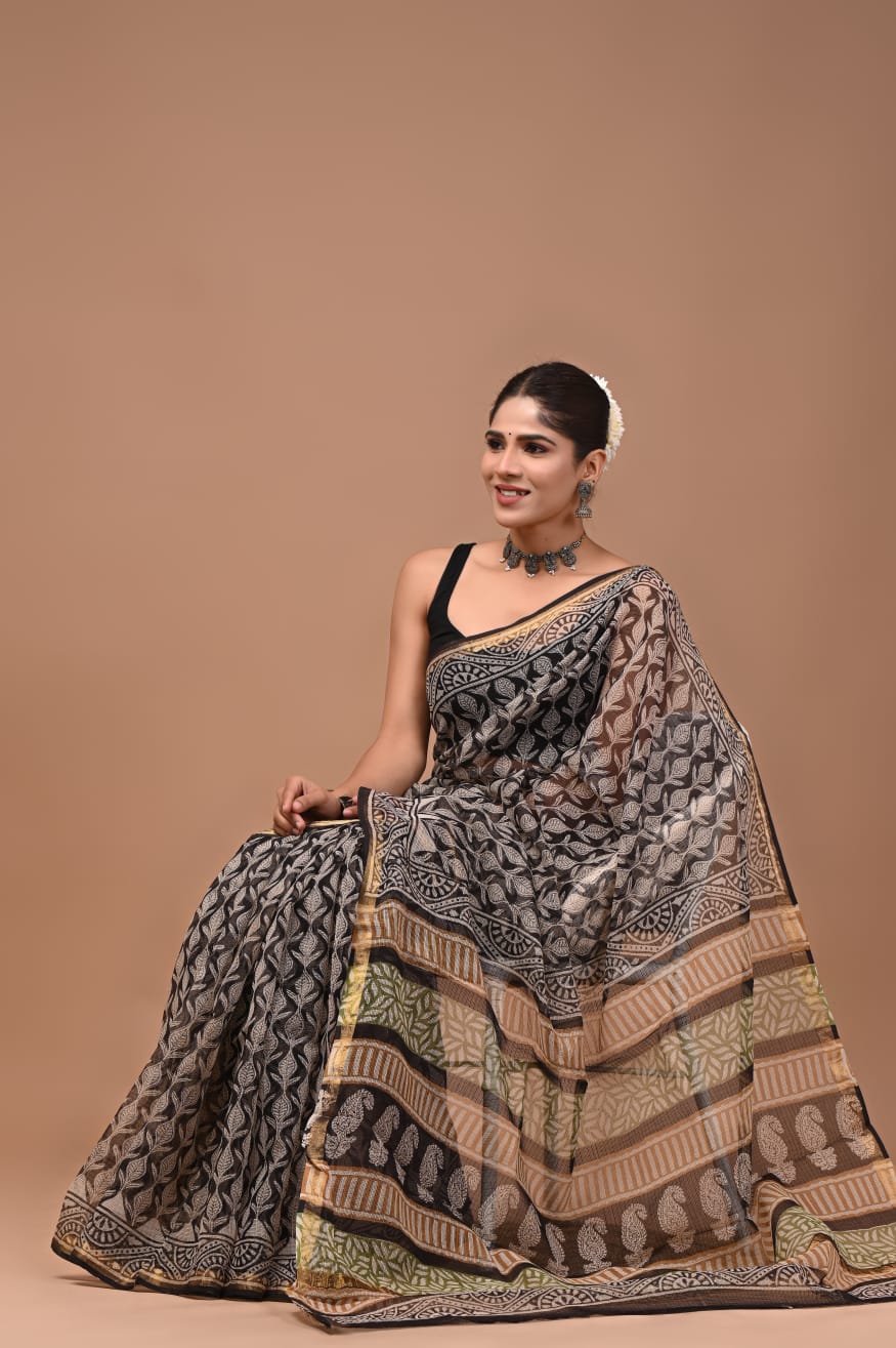 In a vibrant celebration of heritage, this Kota Doria saree features intricate floral motifs that dance across a rich crimson backdrop. Each print is a testament to the meticulous hand block printing technique, embodying the artistry that runs deep in Indian traditions.