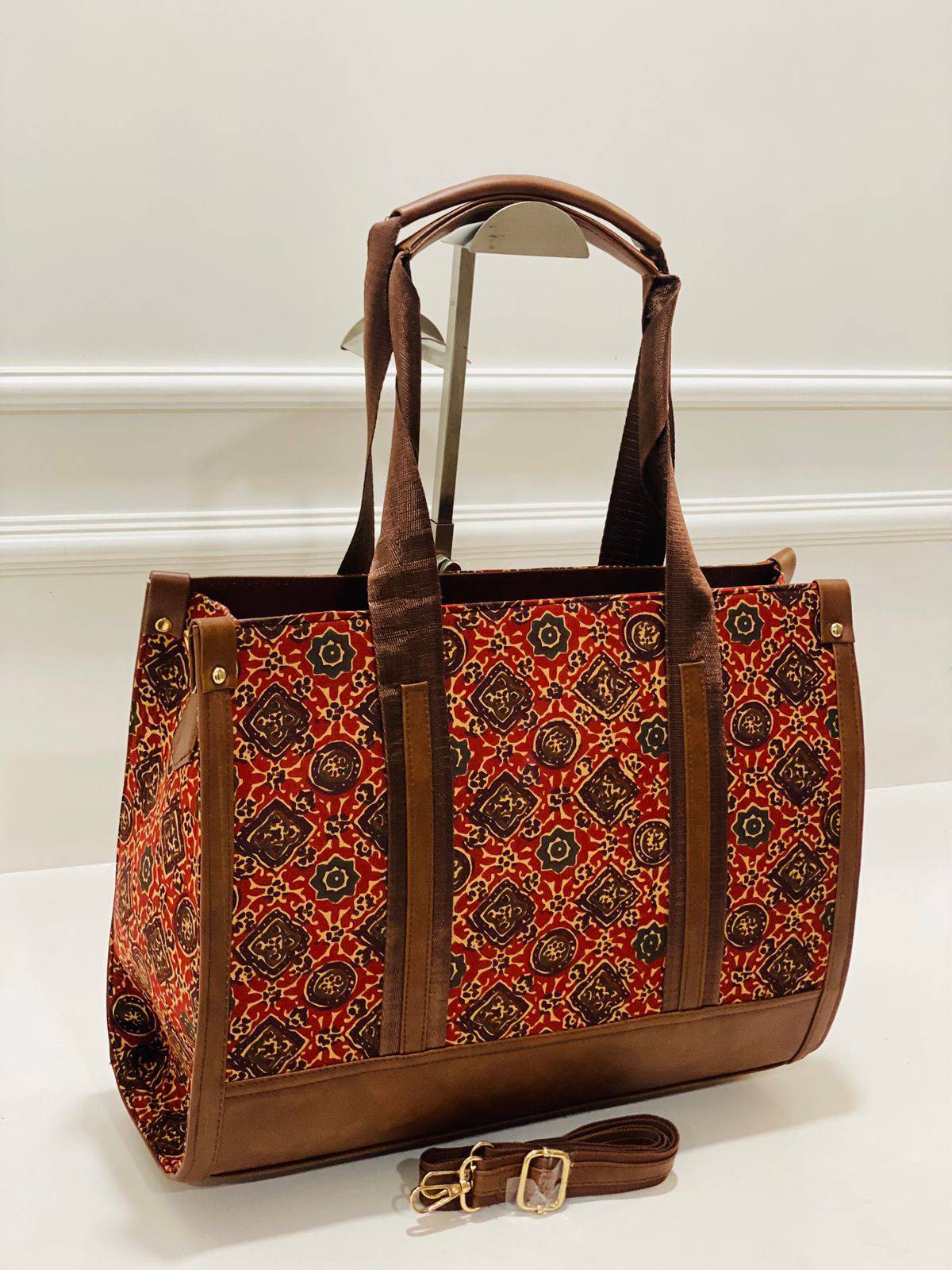 Carefully made for lasting wear, the bag is designed to not only hold your belongings but to also express your unique style. The sturdy leather base and handles add a touch of sophistication, making it a delightful companion for both work and leisure.