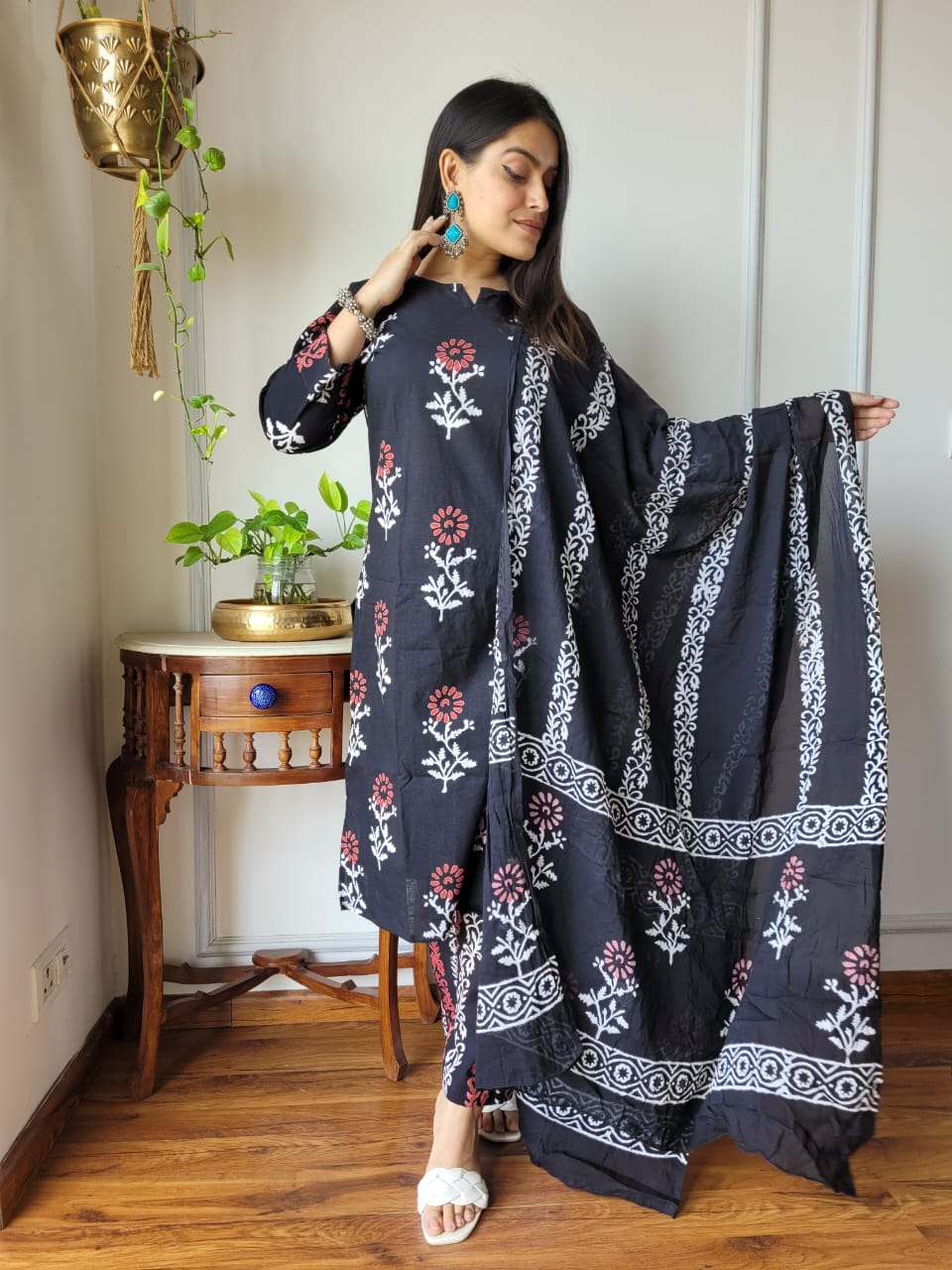 Carefully made for lasting wear, this suit set features exquisite hand block prints that celebrate the artistry of Indian craftsmanship. The lightweight cotton fabric drapes beautifully, allowing for effortless movement and breathability—ideal for the warmth of summer days or casual gatherings.