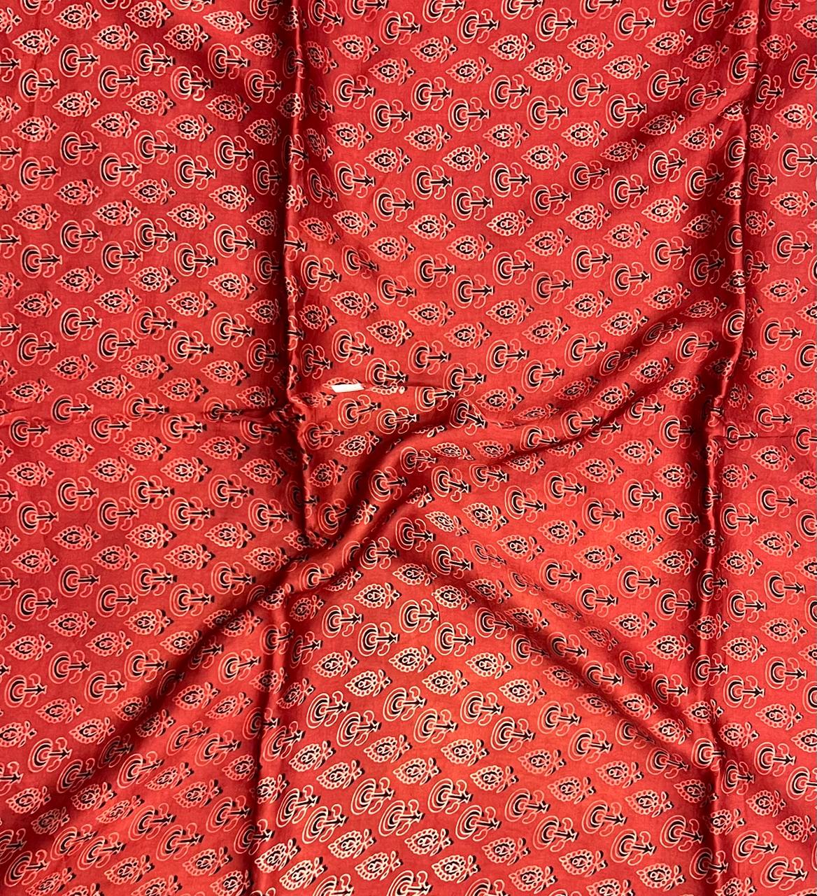 This vibrant crimson fabric showcases an engaging geometric pattern, merging traditional artistry with contemporary flair. The bold contrast of black and white motifs dances across the smooth surface, inviting creativity in your wardrobe or home decor. Crafted with a fine weave, this textile offers a light, flowy drape, making it a delightful choice for garments that demand attention. Refresh your creations with this energetic design that effortlessly balances heritage and modernity.