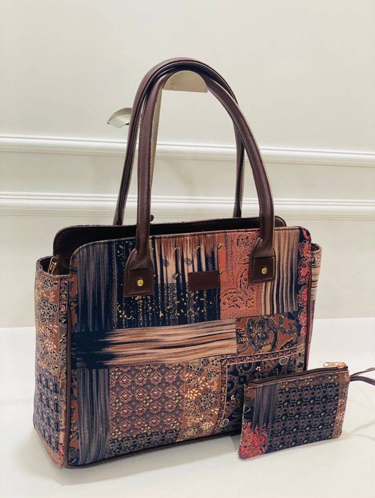 Embrace the unique charm of the Crimson Patchwork Bliss Nylon Handbag with Matching Pouch. This artisan-crafted set showcases a captivating patchwork design in rich shades of brown, beige, navy blue, black, and hints of red. The intricate patterns resemble a quilted masterpiece, highlighting the skilled artisan techniques used in its creation.