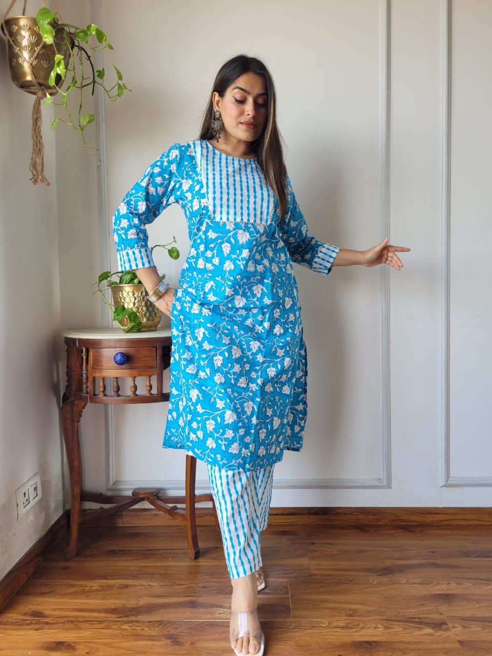 This set features various neck designs and can be worn sleeveless for a casual outing or layered for a more polished look. Perfect for family gatherings or festive celebrations, it effortlessly combines comfort with elegance.