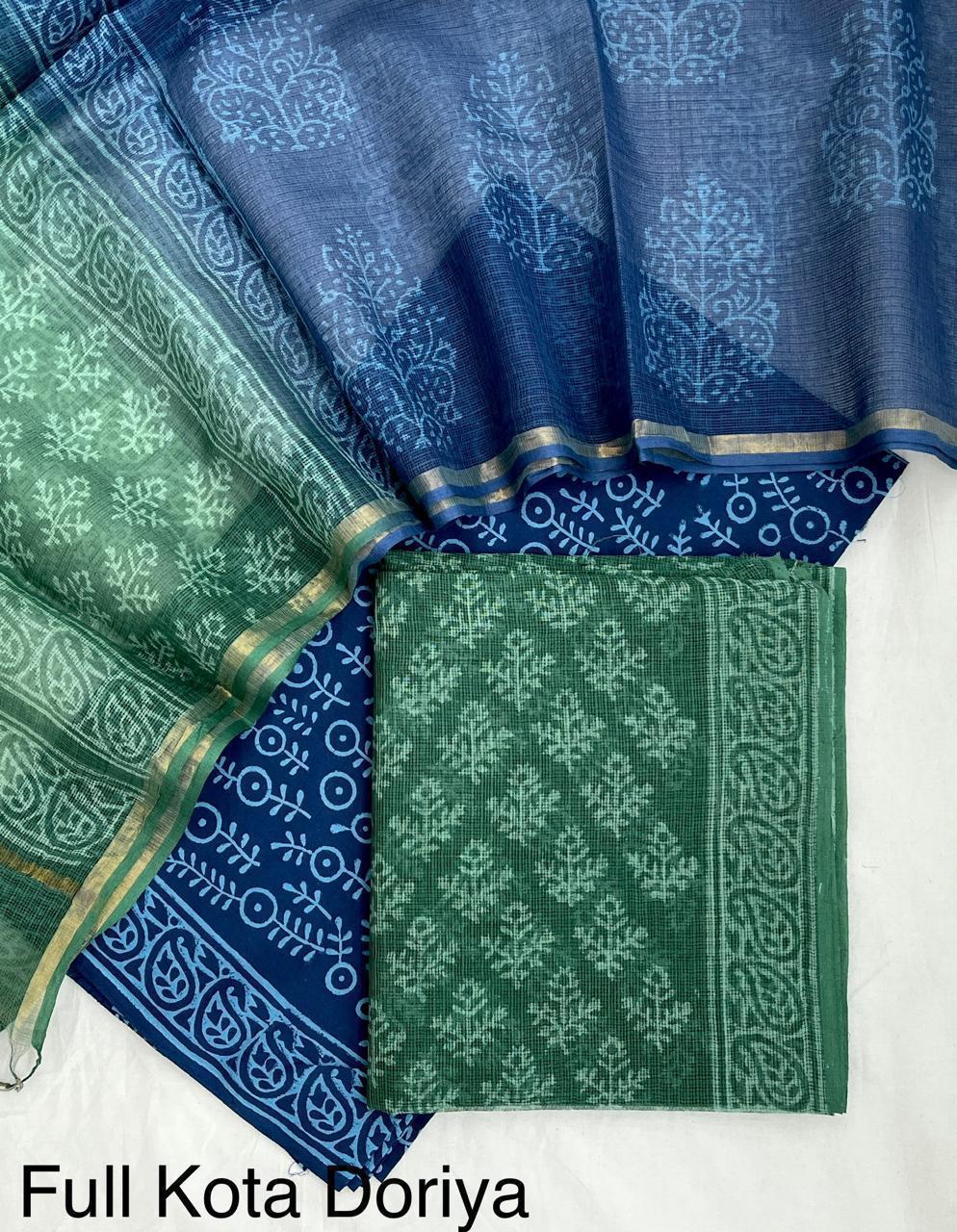 This comfortable daywear suit, complete with a matching dupatta. Made from breathable Kota Doria fabric, its distinctive open-weave ensures lightweight comfort, perfect for all-day wear. The "daywear" aspect suggests practical yet elegant prints, often featuring subtle patterns, delicate florals, simple geometrics, or abstract designs in soothing or vibrant colors that are suitable for everyday settings. The focus is on ease of movement and classic appeal, making this suit an ideal choice for office wear, casual outings, or simply maintaining a polished look throughout your busy day.