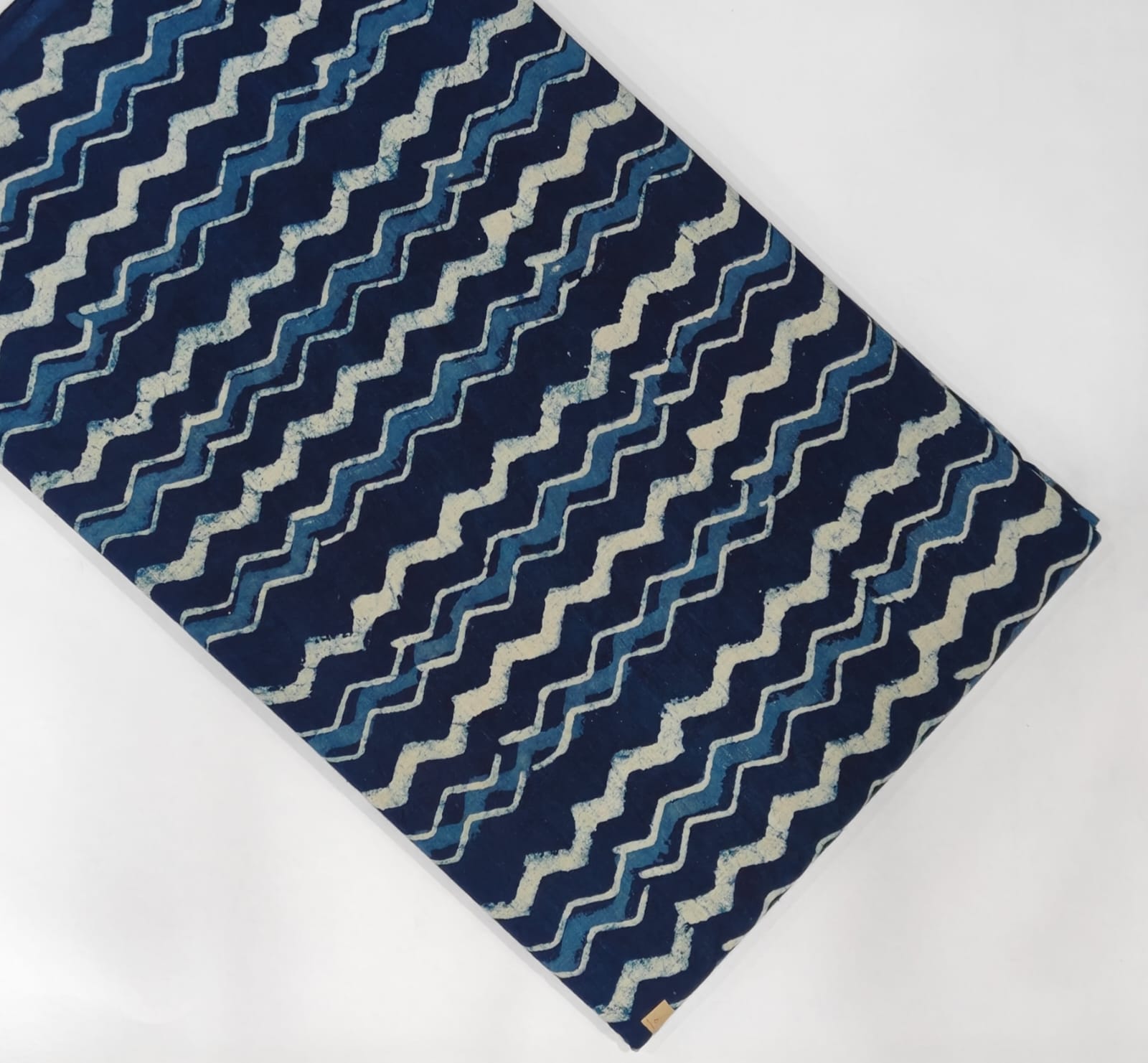 Infused with the spirit of tradition, our Deep Blue Zigzag Pattern Cotton Running Fabric embodies the meticulous artistry of Bagru hand block printing. The undulating zigzag design, adorned with varying shades of blue, creates a rhythmic flow that captivates the eye. Each piece is a testament to the skill of artisans who have honed their craft over generations.