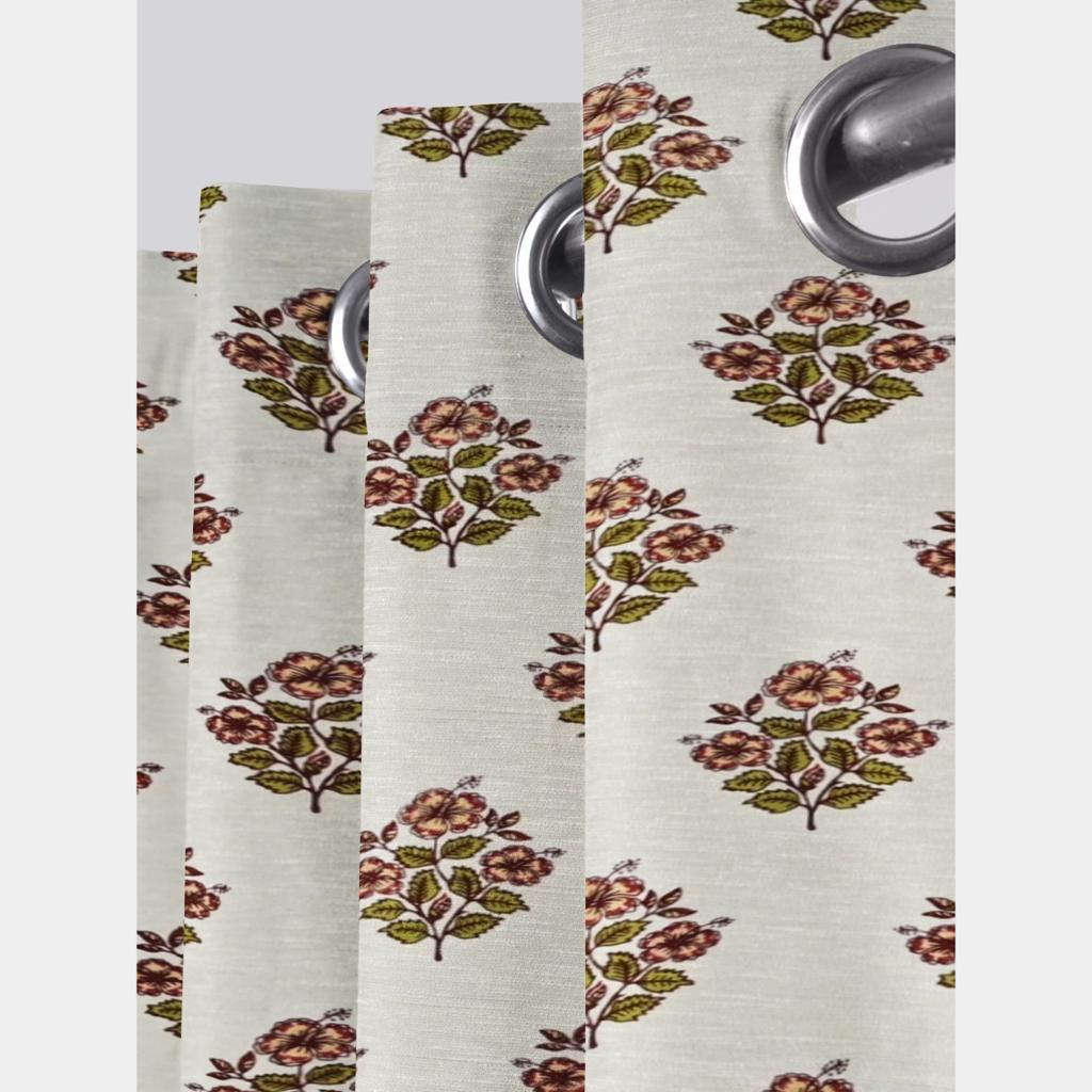 Discover the charm of vintage aesthetics with our Dusty Rose Blossoms Cotton Curtains. Each curtain is an artisan-crafted piece, showcasing a delicate floral pattern that whispers stories of traditional Indian craftsmanship. The muted tones of dusty rose and olive green create a harmonious blend, perfect for infusing warmth and elegance into your living spaces.
