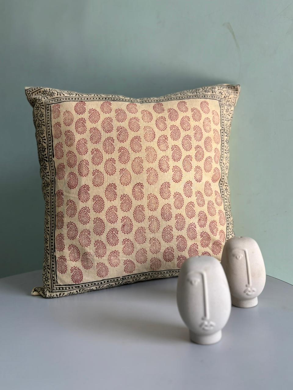 Drape your living space in the elegance of tradition with these Dusty Rose Paisley Cotton Cushion Covers. Each cover showcases a delightful paisley pattern against a soft, creamy backdrop, meticulously crafted to reflect the timeless artistry of Indian block printing. The rich, muted tones evoke a sense of warmth, making it an effortless addition to any room.