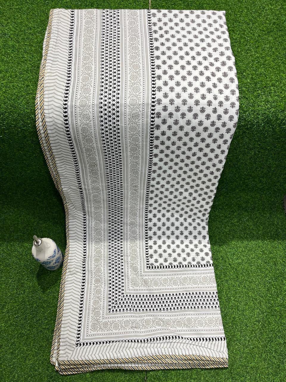Immerse yourself in a tapestry of intricate design with our Ebony Geometric Elegance Dohar. This exquisite piece draws inspiration from traditional Indian craftsmanship, featuring a harmonious interplay of black and white patterns, accentuated by muted gold borders. Each detail tells a story, celebrating the rich heritage of hand block printing.