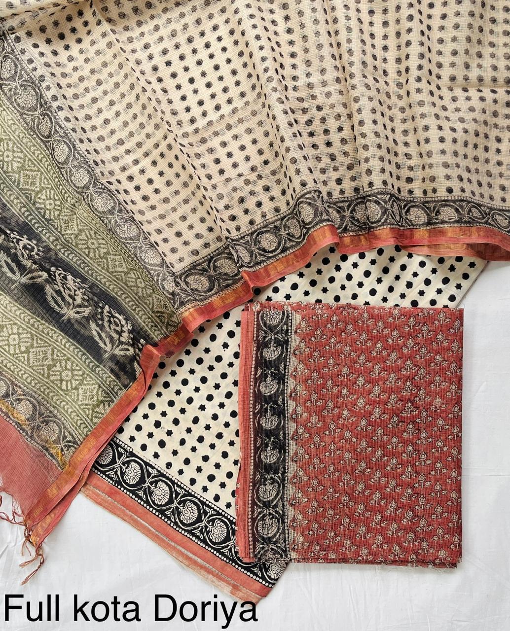 Add a touch of vibrant elegance to your wardrobe with this stunning Red and cream-color Kota suit. Crafted from lightweight Kota fabric (Kota Doria or Kota Cotton), it ensures exceptional breathability and comfort, making it suitable for various occasions. The color aspect refers to a harmonious or playful combination of hues within its prints. These prints often feature intricate patterns, possibly traditional motifs, abstract designs, or contemporary interpretations, where different colors are cleverly used to create depth and visual interest. This suit is perfect for those who appreciate a graceful aesthetic combined with a lively burst of color, suitable for semi-formal gatherings or festive celebrations.