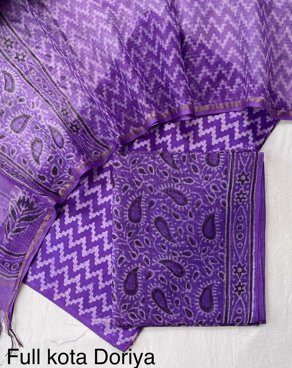 Embrace refined elegance with this versatile suit combo, expertly fashioned from a luxurious silk cotton Kota Doria blend. This fabric combines the crisp, airy feel of traditional Kota Doria with the subtle sheen and smooth drape of silk, offering enhanced comfort and a more luxurious appeal. The blend makes it lightweight yet durable, perfect for an all-day comfortable wear. While the "elegant" aspect suggests a sophisticated design, this typically means subtle, tasteful prints or weaves that complement the fabric's natural beauty. It's designed for those who appreciate understated grace, making it suitable for both professional settings and social gatherings.