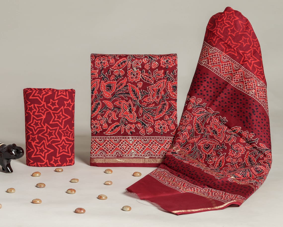 This is a beautiful design handblock print suit with pure chanderi silk suit with a chanderi silk dupatta. This is a beautiful piece of this material. This suit is perfect for daily wear. Ladies or girls and ladies love to wear it and are happy to take it to their ward drop. Take the chance to look fabulous in that beautiful outfit. Women love this floral print part in their outfits.