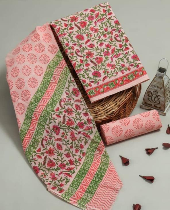 Hand block printed cotton suit with cotton duptta dress material with 3 piece set
