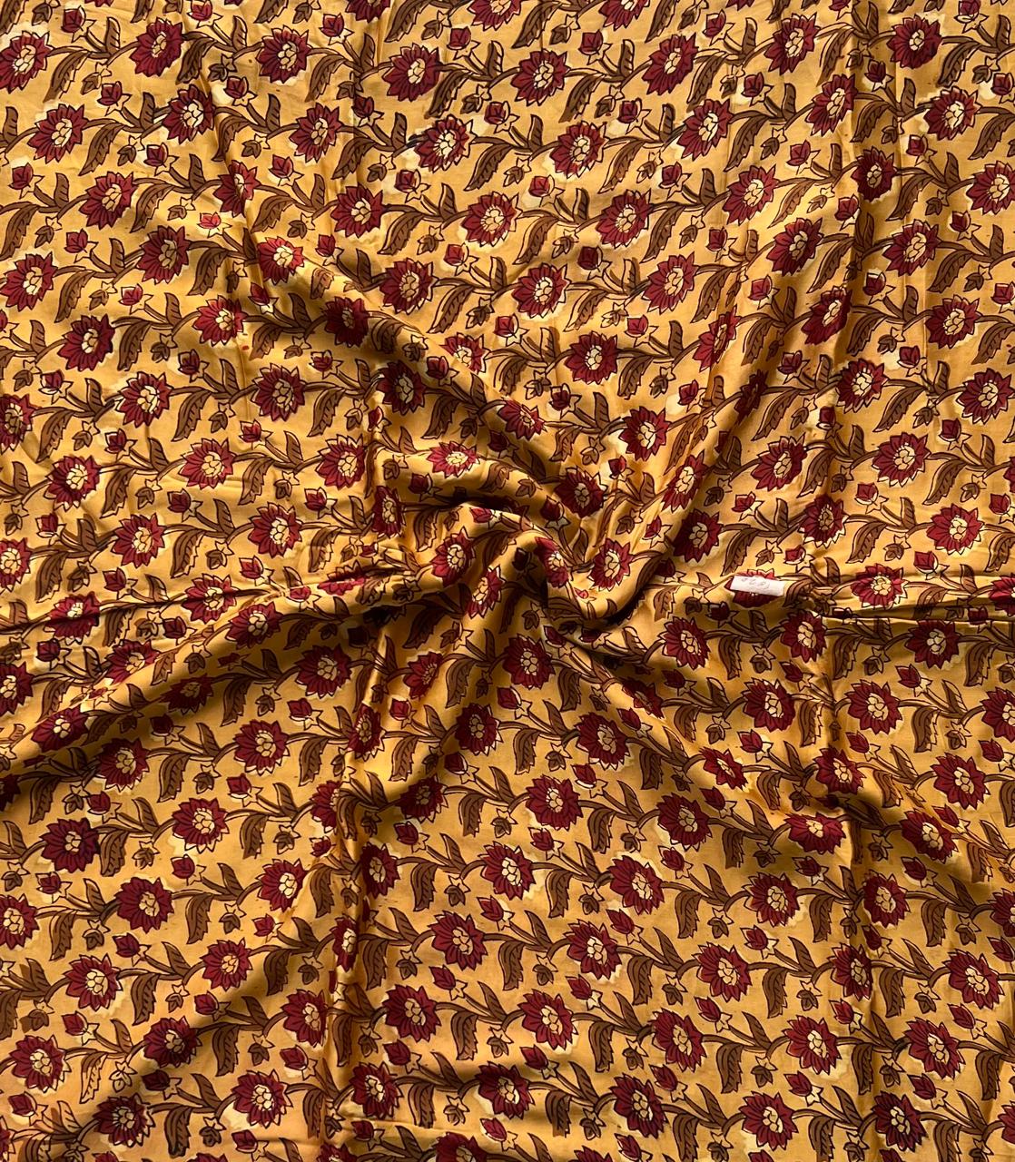 The soft, fluid drape of this fabric invites you to explore its many possibilities—from flowing dresses to whimsical scarves. With its hand block printed design, each piece showcases slight variations, making every yard a unique treasure. The smooth texture and gentle sheen offer a luxurious feel against the skin, ensuring comfort during wear.