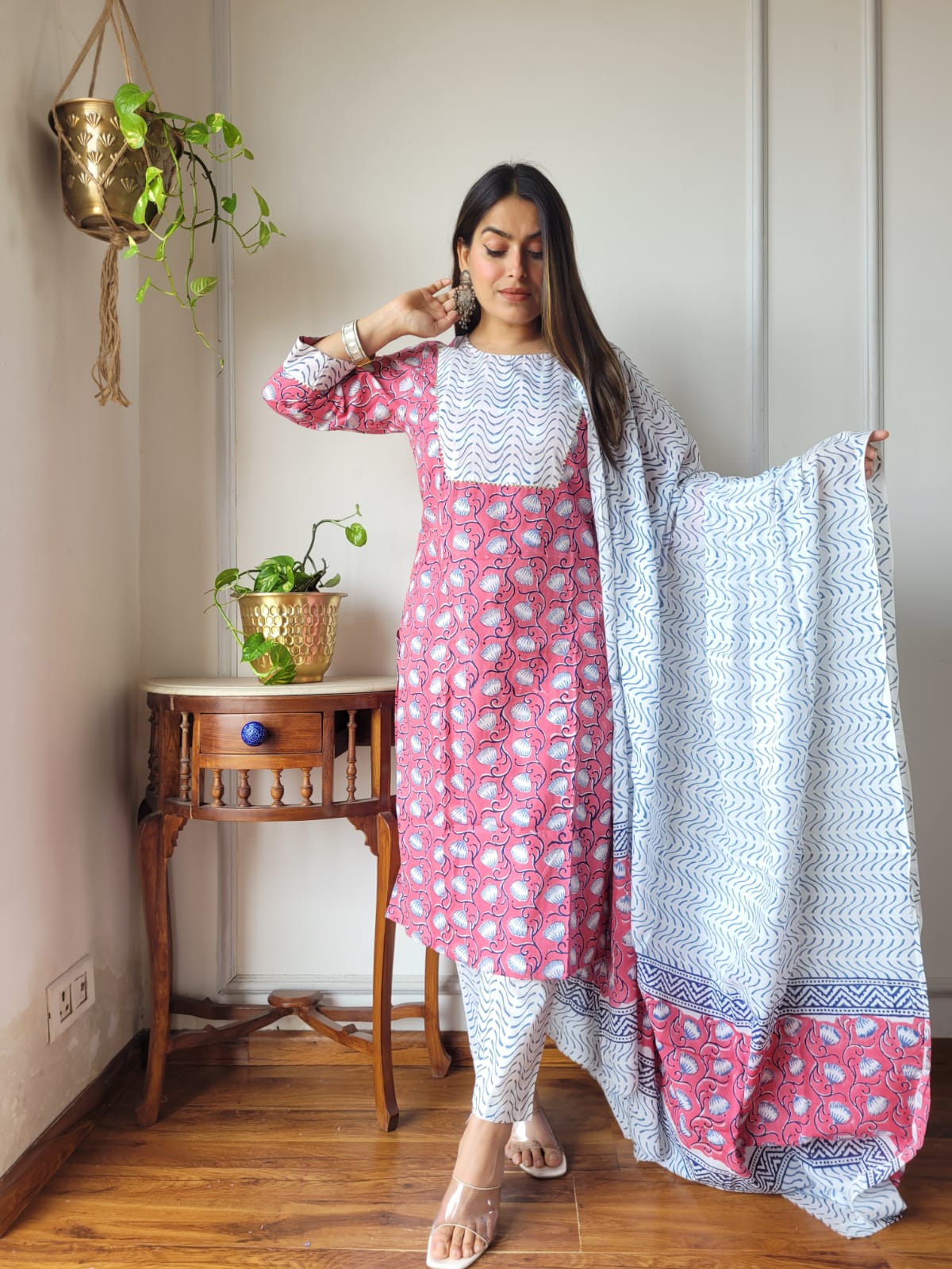 Imagine pairing this exquisite set with juttis for a family function or with minimalistic accessories for lunch with friends. The elegant drape of the kurti, coupled with the matching dupatta, instantly uplifts your look, reflecting your appreciation for traditional art in a contemporary context.