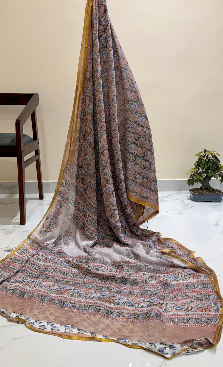 Exclusive Premium Handblock Printed Pure Double Diamond Chiffon Sarees