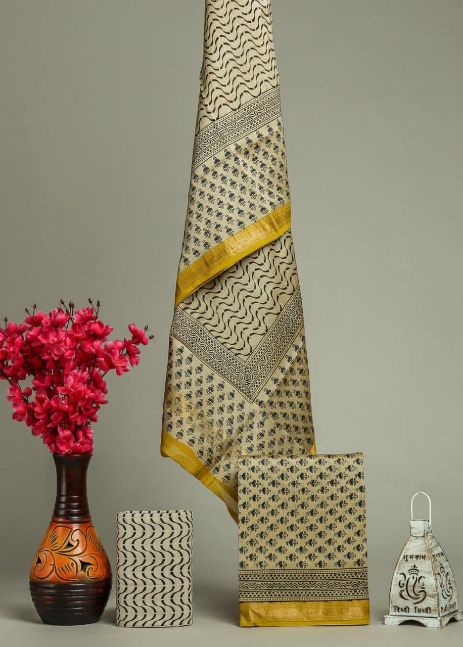 Handblock printed Maheswari silk suits set includes: