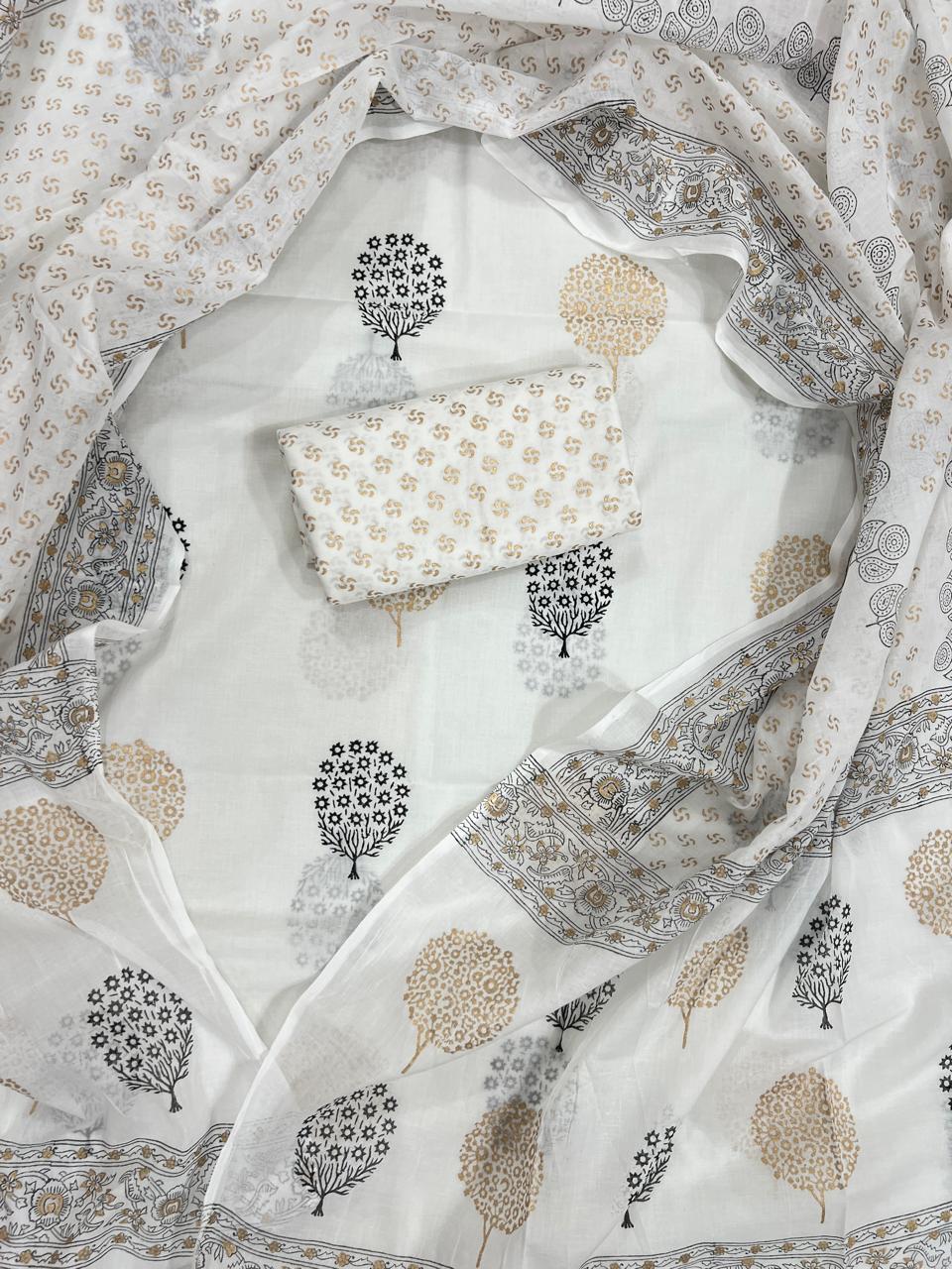 Style it with traditional accessories for a stunning ethnic look, or pair it with contemporary pieces for a modern twist. With the Golden Tree Elegance Cotton Suit Set, youβre not just wearing a garment; youβre embracing a piece of art that celebrates the beauty of Indian textile heritage.
