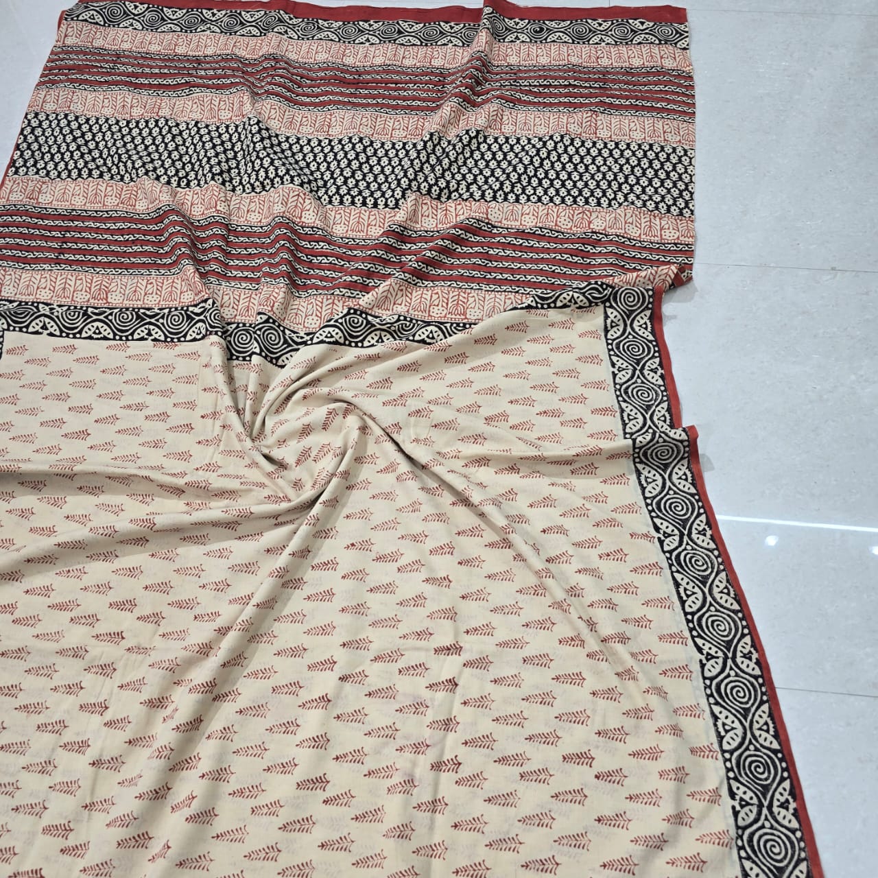 Cotton Mulmul Bagru Hand block printed saree