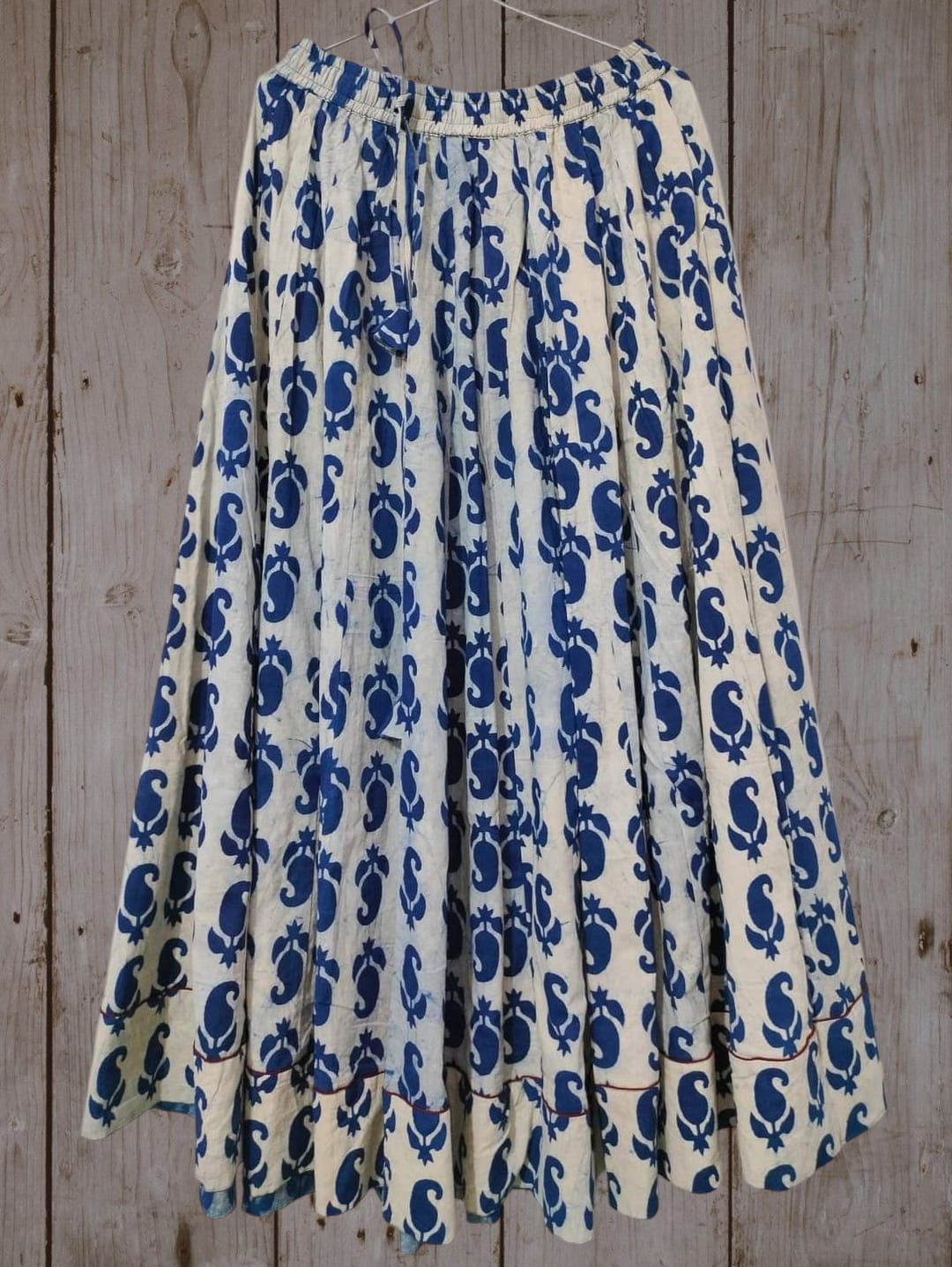 Hand Block Printed Blue Floral Cotton Designer Skirt