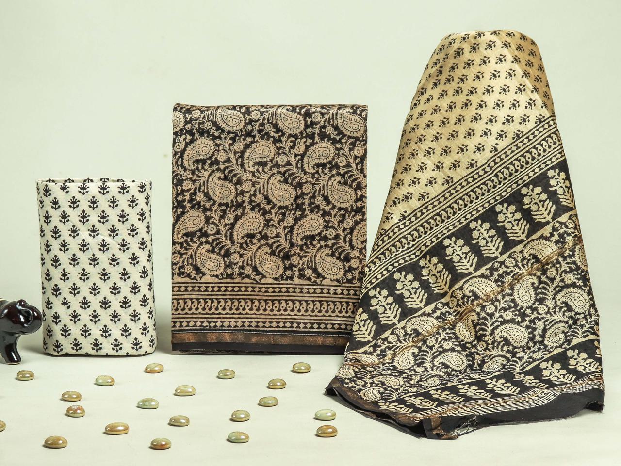 Embrace the artistry of hand block printing and indulge in the premium quality of Chanderi silk and cotton fabrics. This set provides you with the opportunity to create unique, personalized outfits that reflect your style and sophistication.