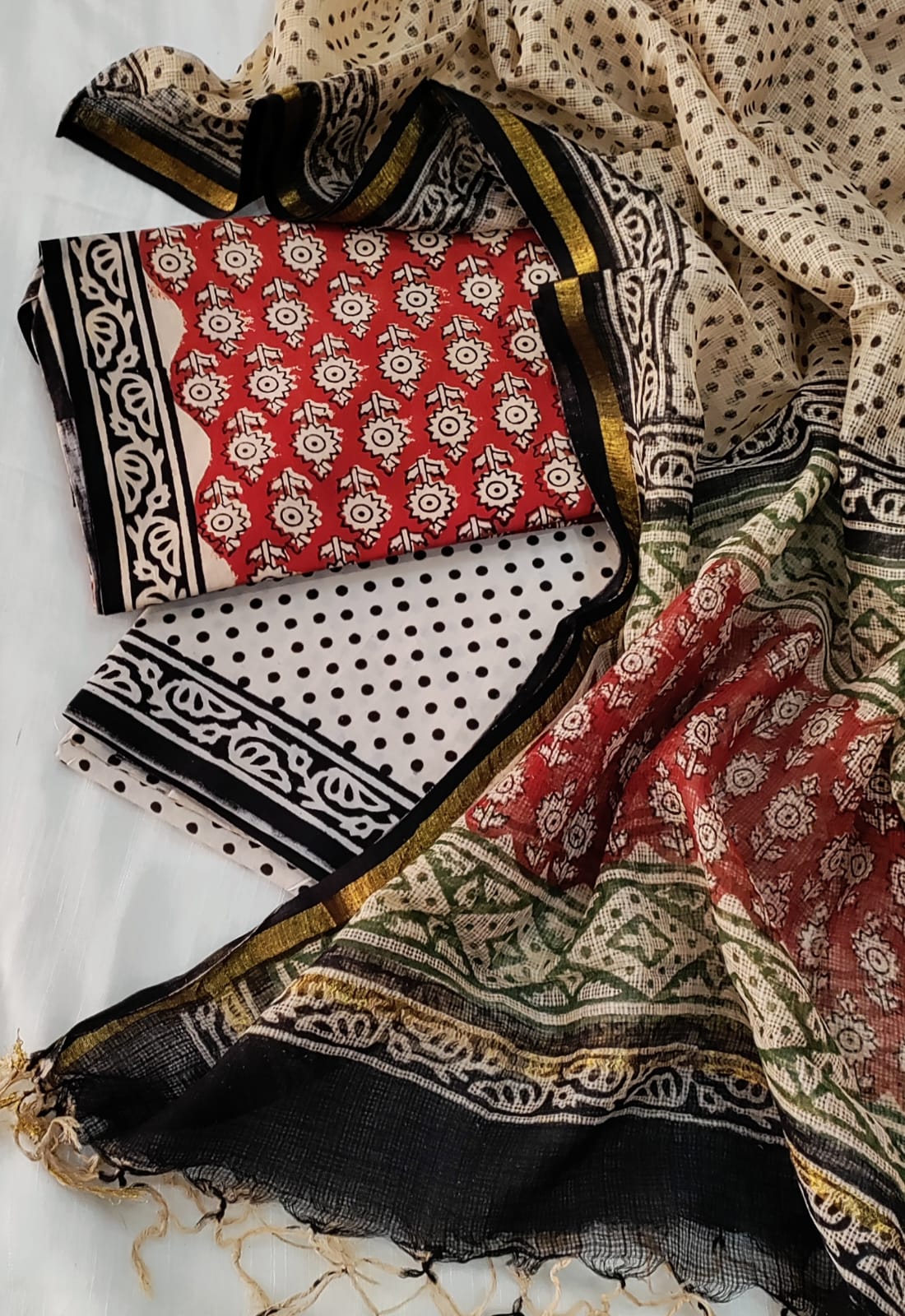 Hand Block Printed Cotton Suit with Kota Doria Dupatta