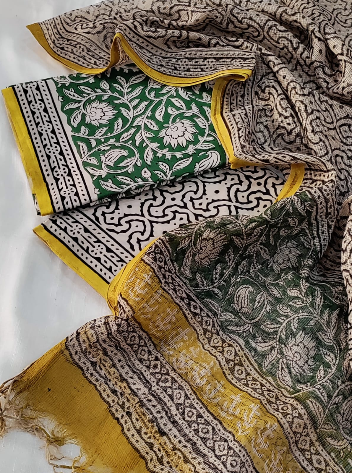 • Intricate hand block printed floral and geometric patterns