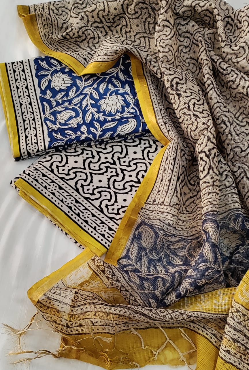 Hand Block Printed Cotton Suit with Kota Doria Dupatta Set