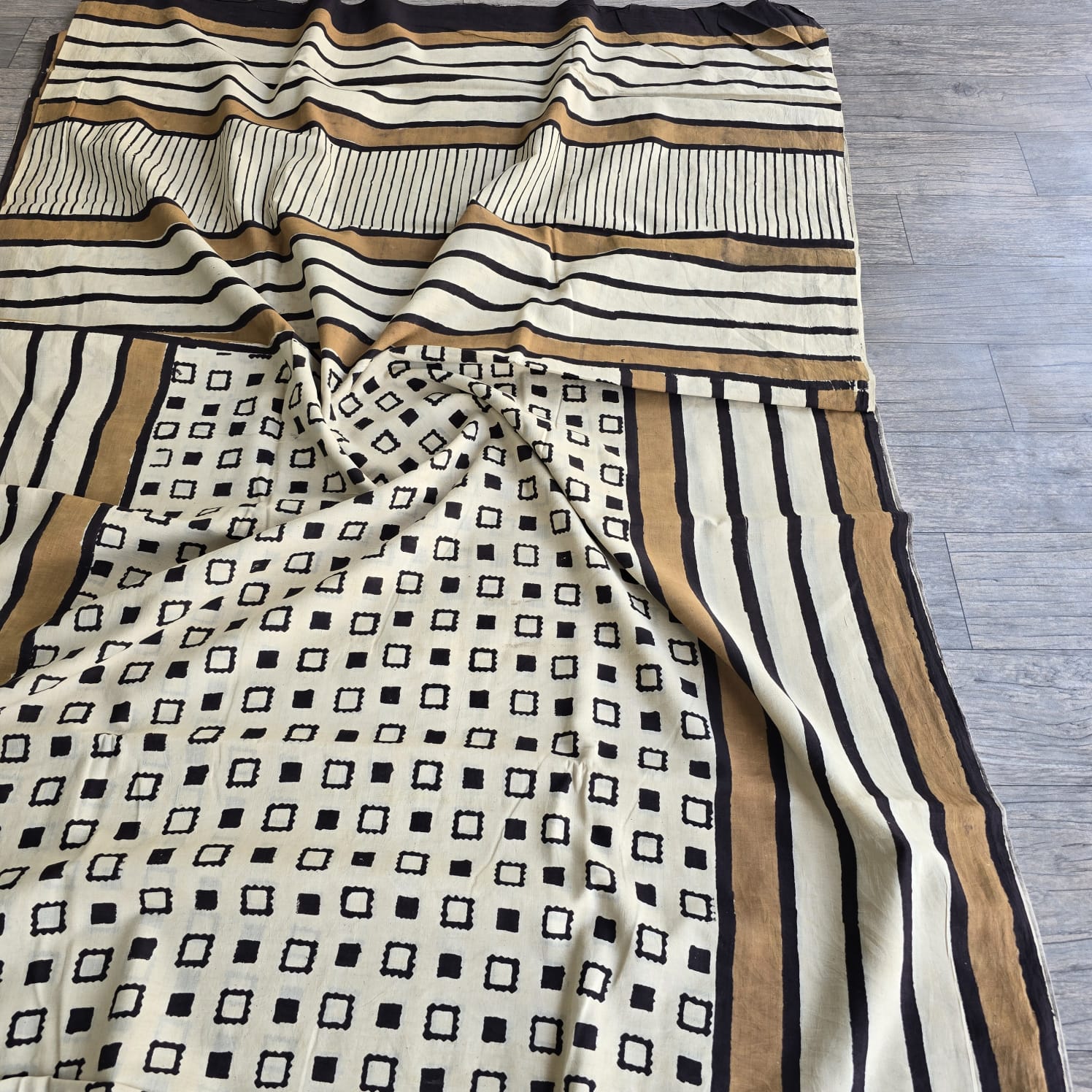 Hand Block Printed Earthy Geometric Cotton Saree Set