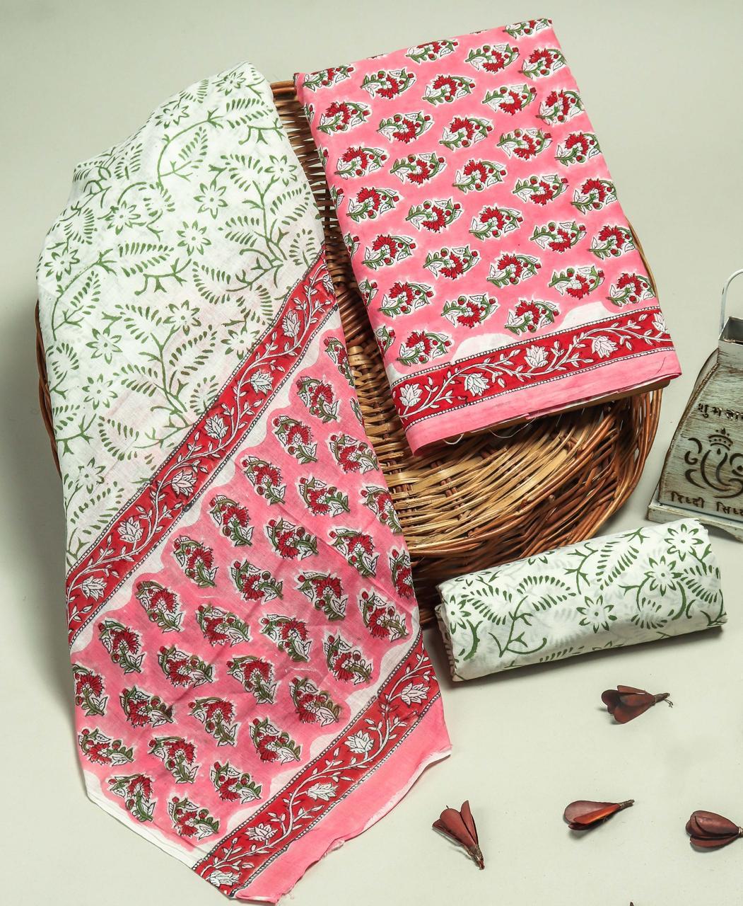Hand block printed cotton suit with cotton duptta dress material with 3 piece set