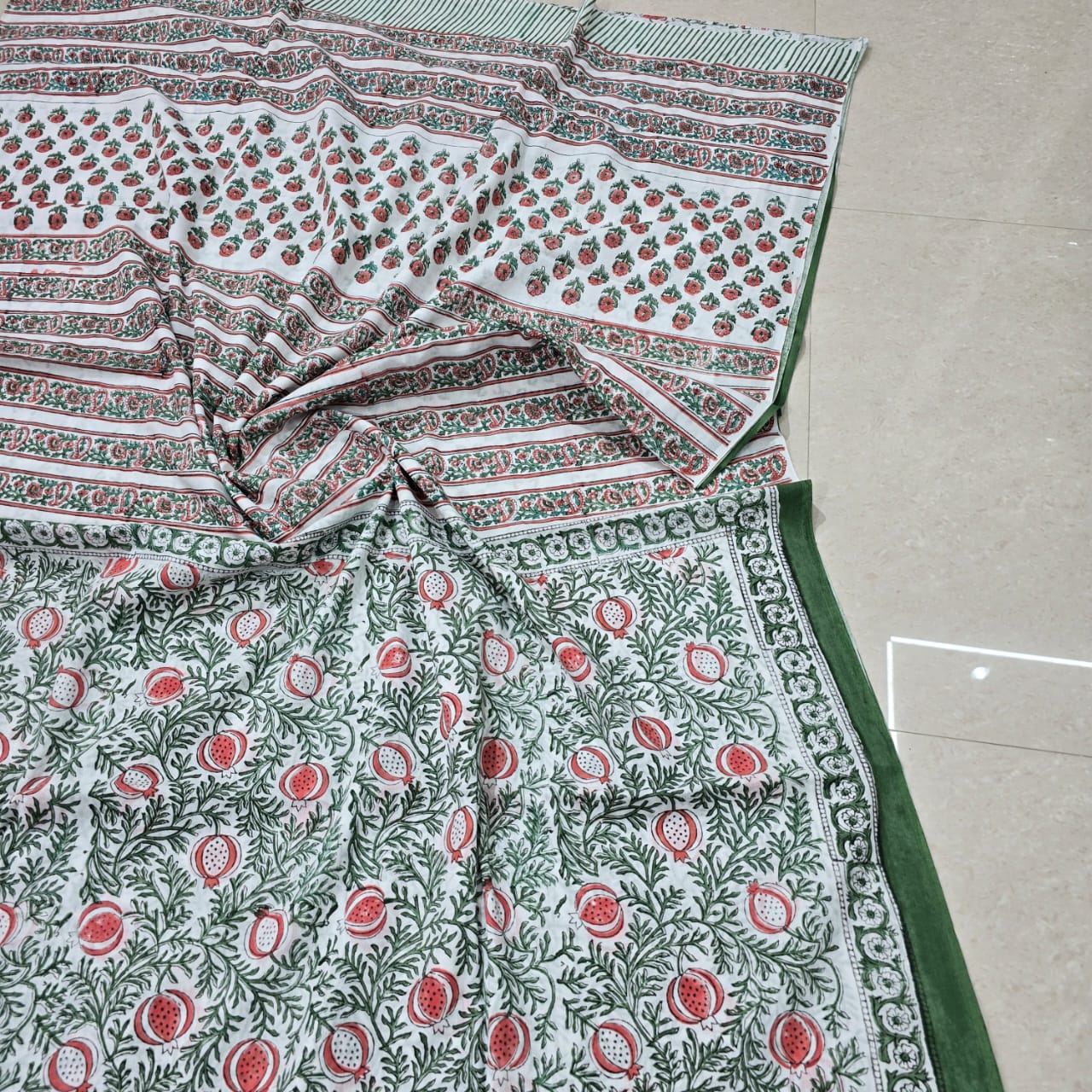 Hand Block Printed Pomegranate Vine Cotton Saree