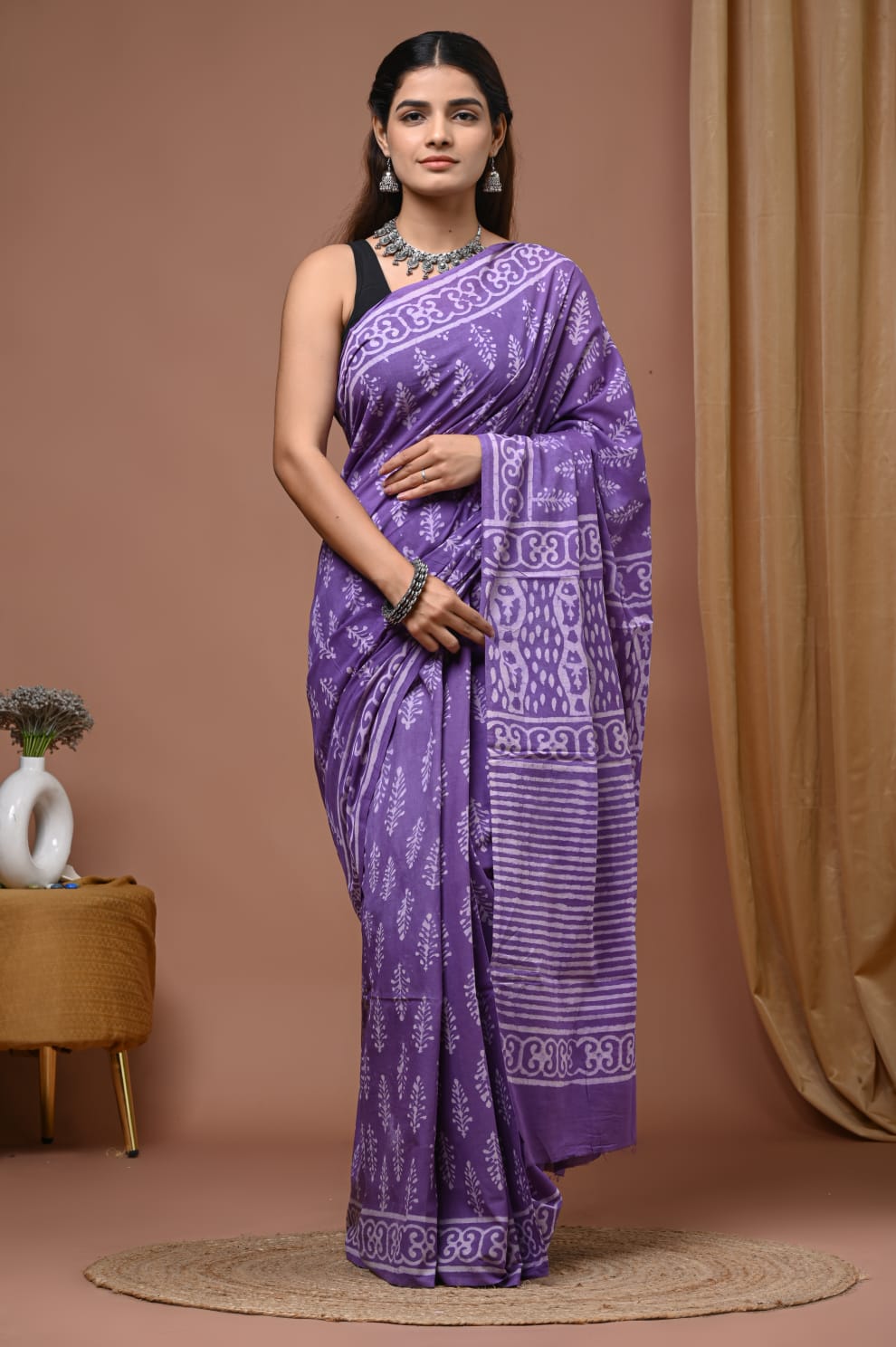 Experience the comfort and craftsmanship of artisanal Indian textiles with this hand block printed mulmul cotton saree. Elevate your ethnic wardrobe and make a statement with this premium piece from Blockart.