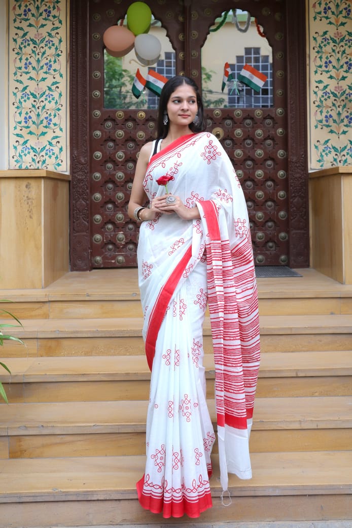 Indulge in the timeless elegance of hand block printing with this exquisite Mulmul Cotton Saree. Crafted with care, this saree features intricate red floral motifs and a striking red border, exuding traditional charm. The lightweight fabric drapes gracefully, offering comfort for all-day wear. Elevate your ethnic wardrobe with this artisanal piece.